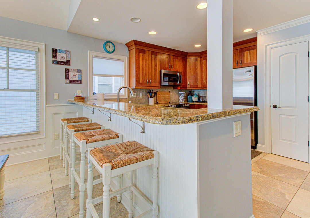 1st Floor Wet Bar (No fridge) Access to Back Patio and Yard with seating for 2