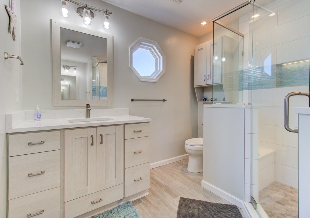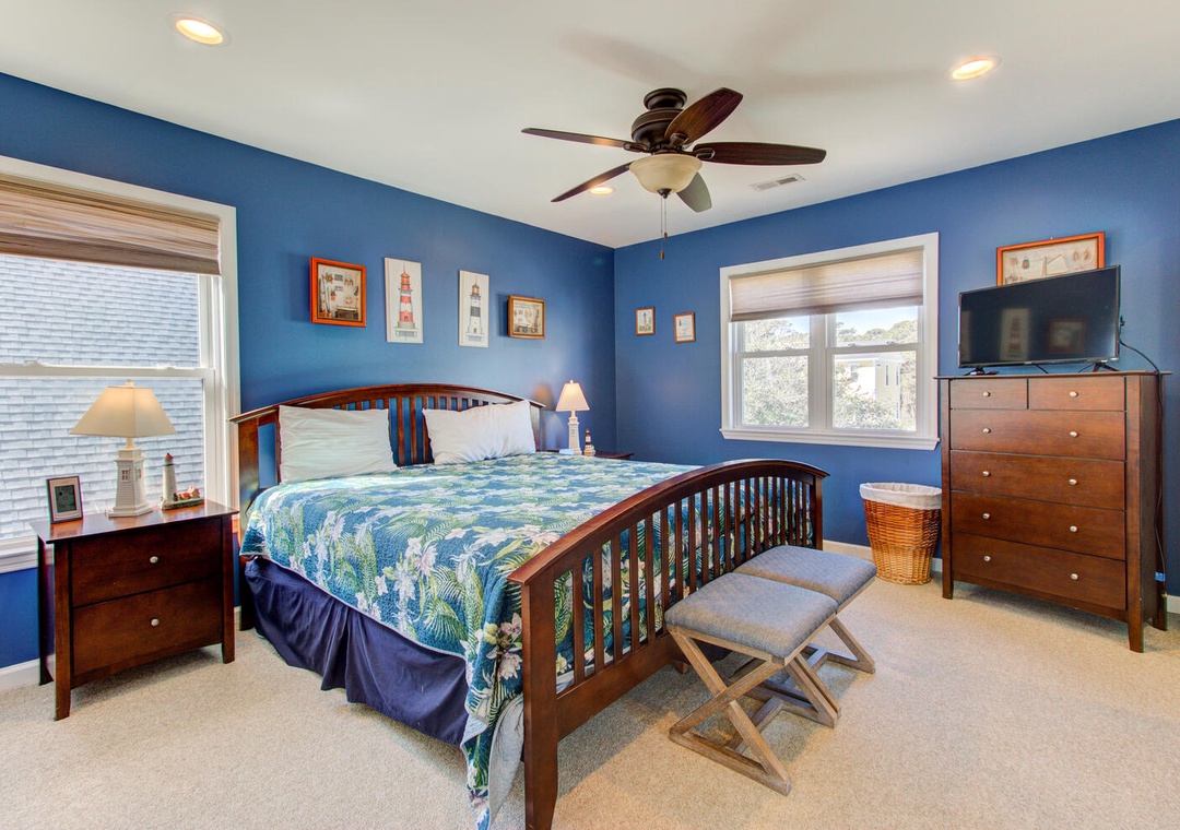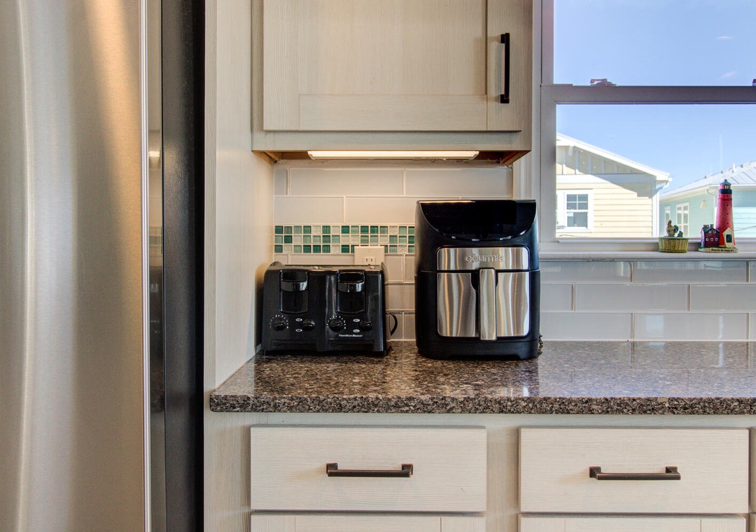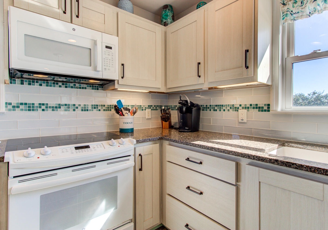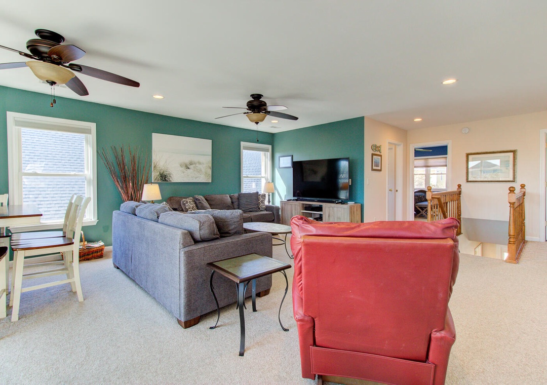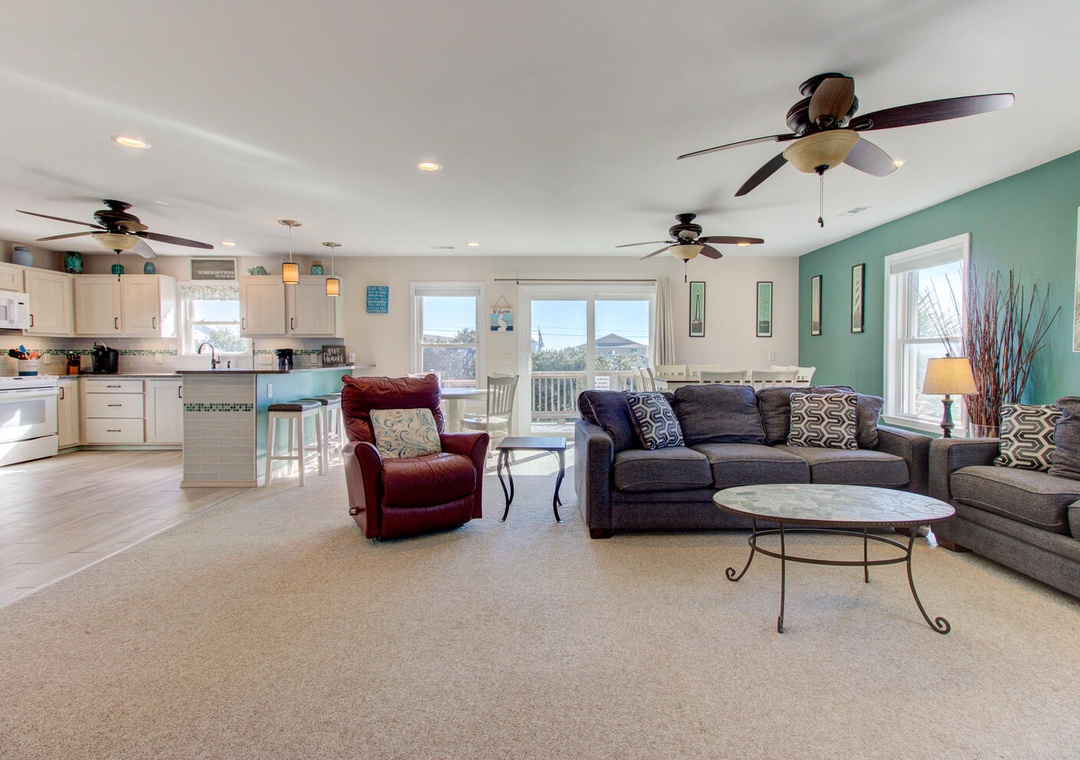 The third floor of Atlantic Views is a haven of comfort and style, featuring two king bedrooms with en suite bathrooms, including a master suite with a beautifully remodeled walk-in shower. The open-concept living, dining, and kitchen area is perfect for gatherings, equipped with new furniture, a 60" smart TV, and a fully updated kitchen complete with modern appliances and a Keurig coffee maker. Step out onto the expansive third-level deck to savor morning coffee with breathtaking views of the Atlantic, or unwind in the evening as the sun sets over the horizon.