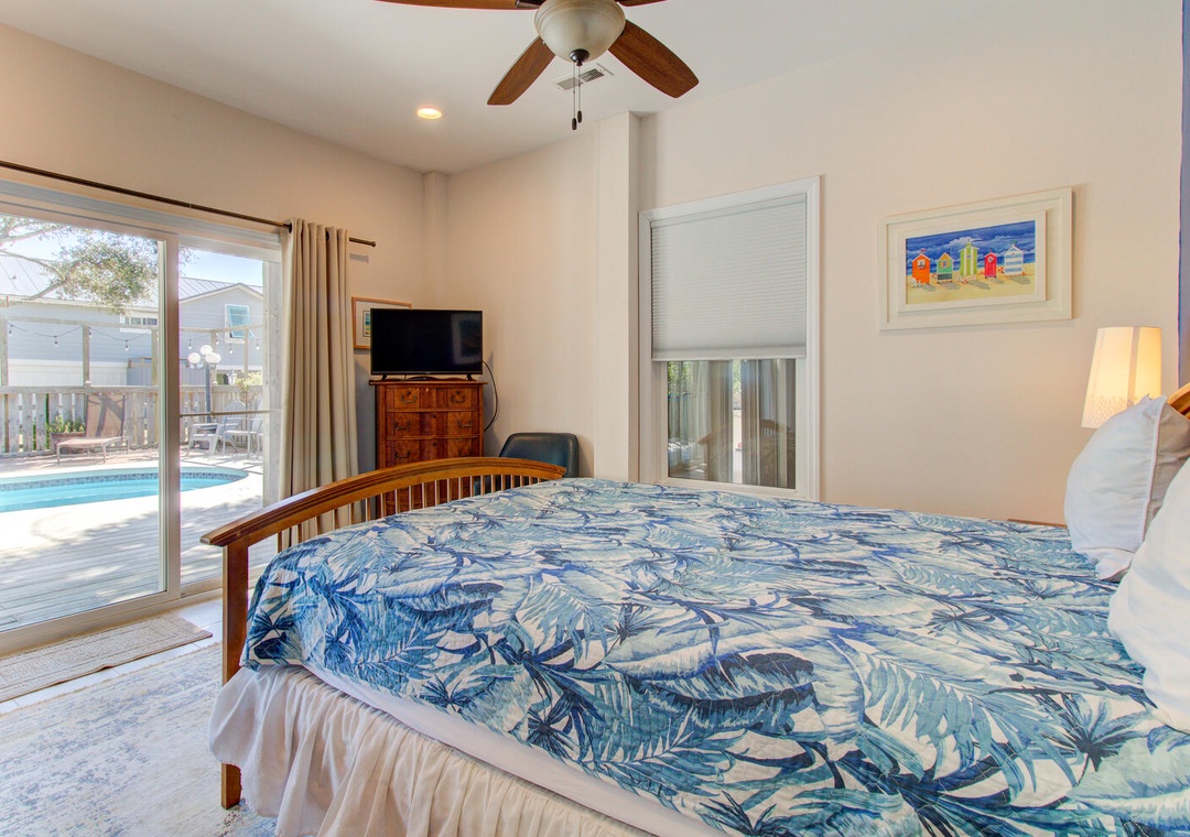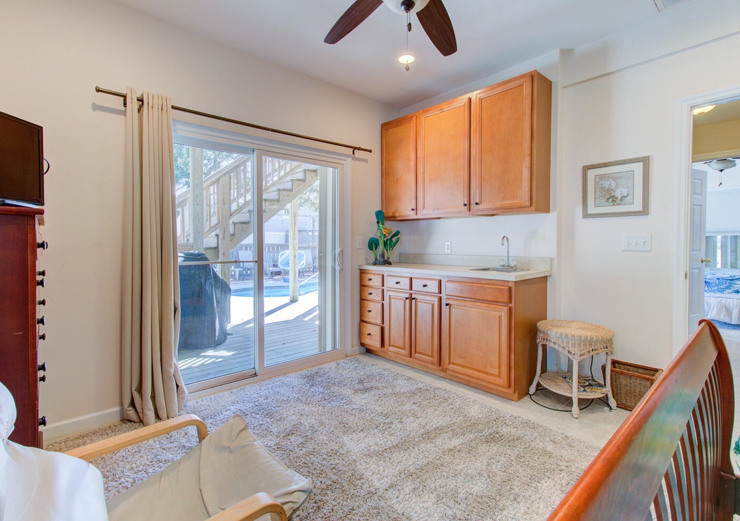 Patio Access Flat Screen TV Ceiling Fan Wet Bar