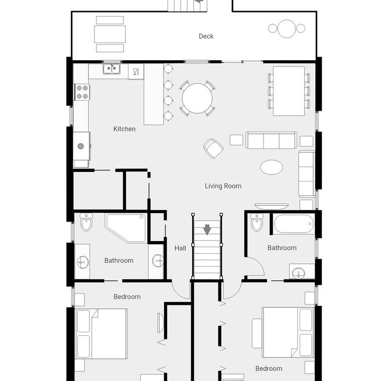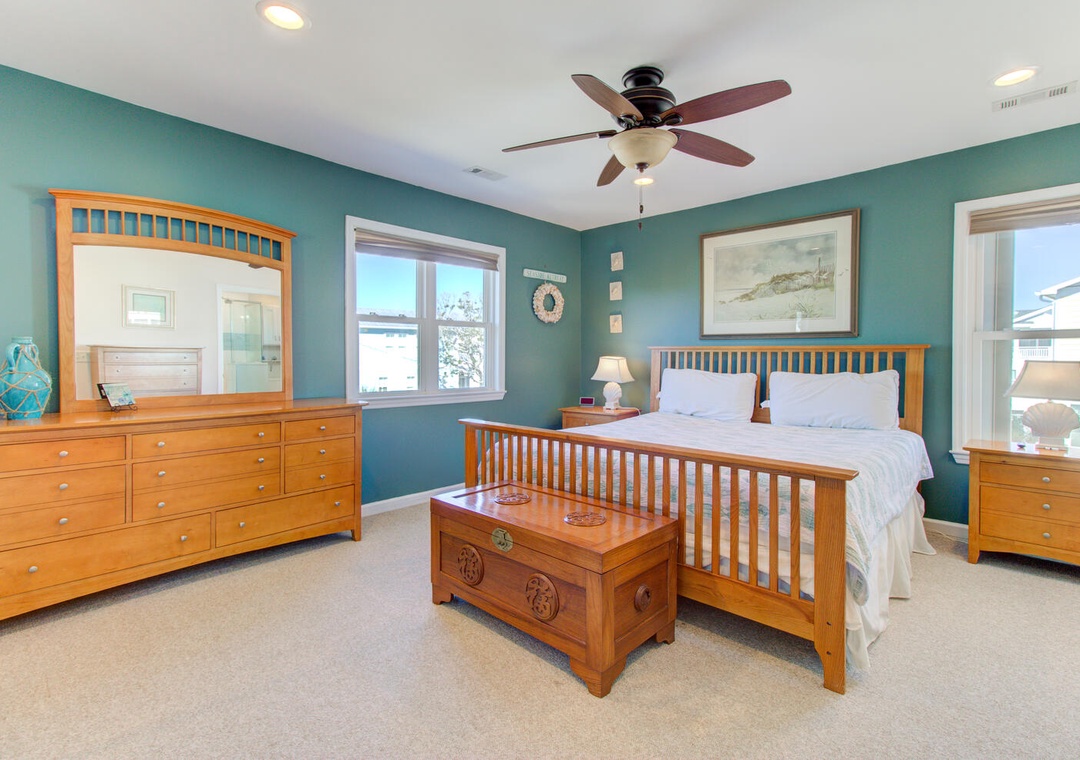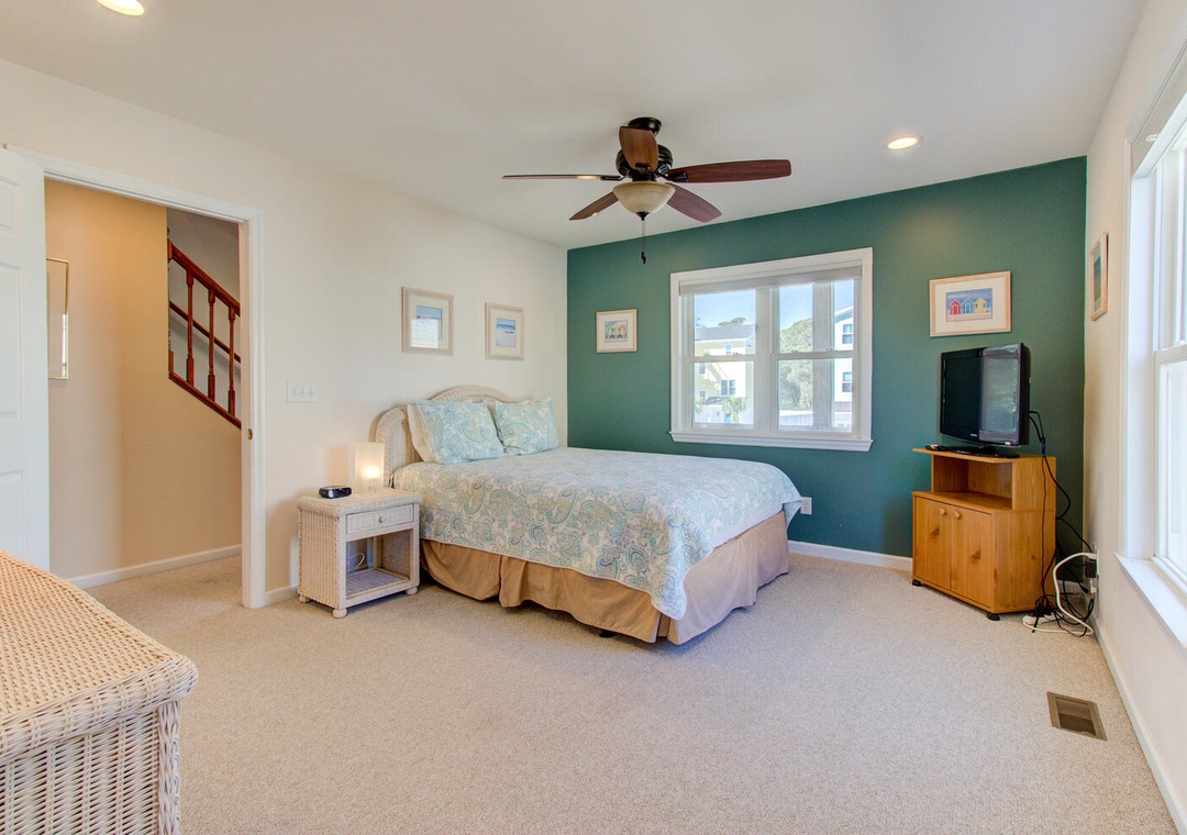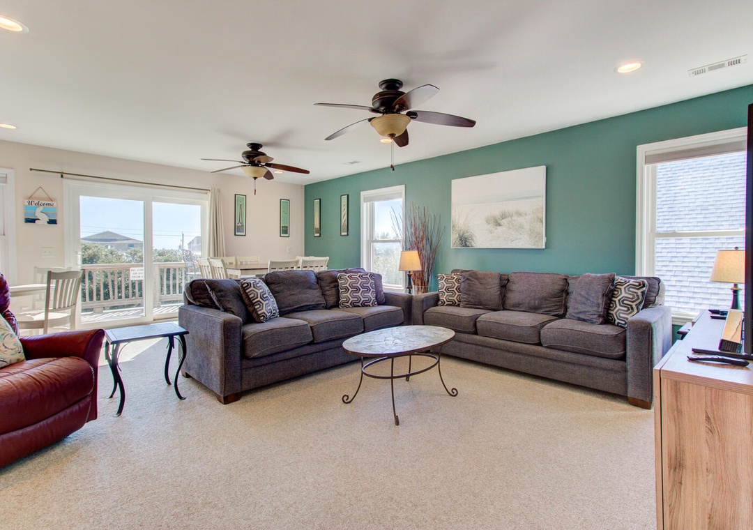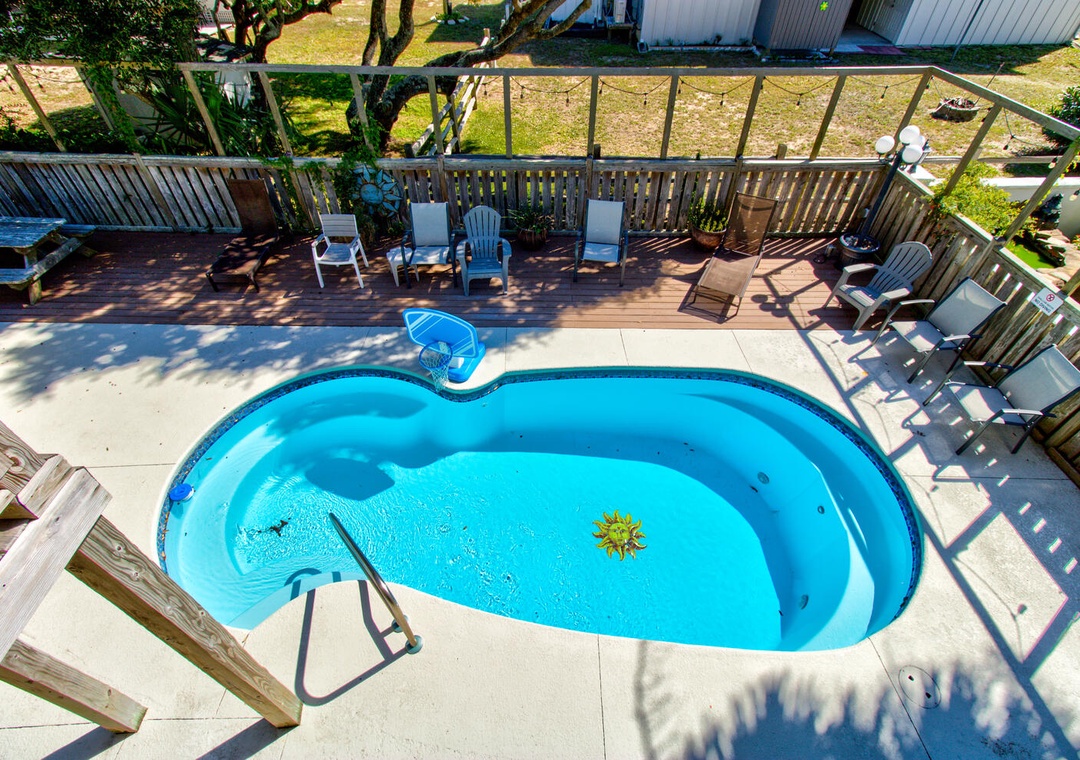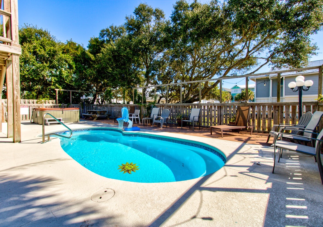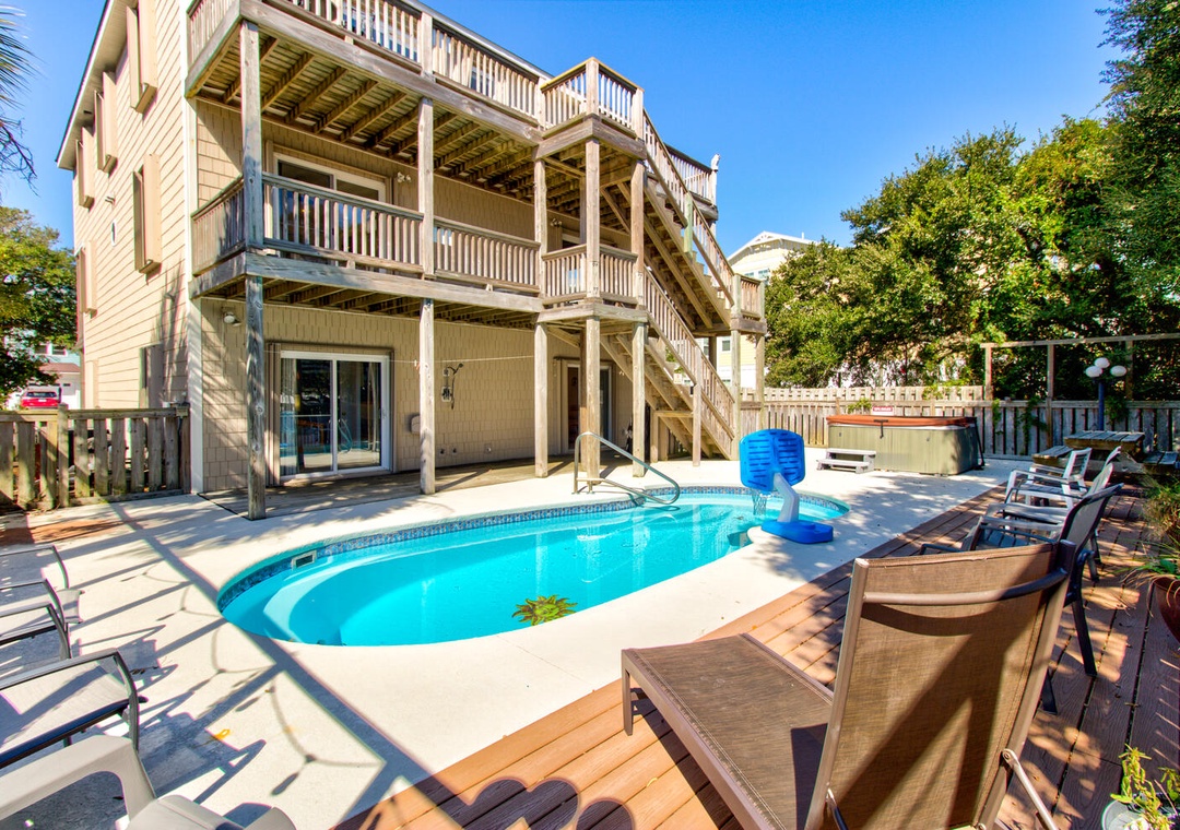 On the second floor, four queen bedrooms and two bathrooms offer additional privacy and convenience, with two of the bedrooms providing direct access to the second-level deck overlooking the pool area below. The first floor features two more queen bedrooms with a shared bathroom and direct access to the pool and hot tub, making it easy to transition between indoor comfort and outdoor relaxation. Whether you're lounging by the pool, enjoying the beach equipment provided, or rinsing off in one of the outdoor showers, Atlantic Views promises an unforgettable vacation experience for all.