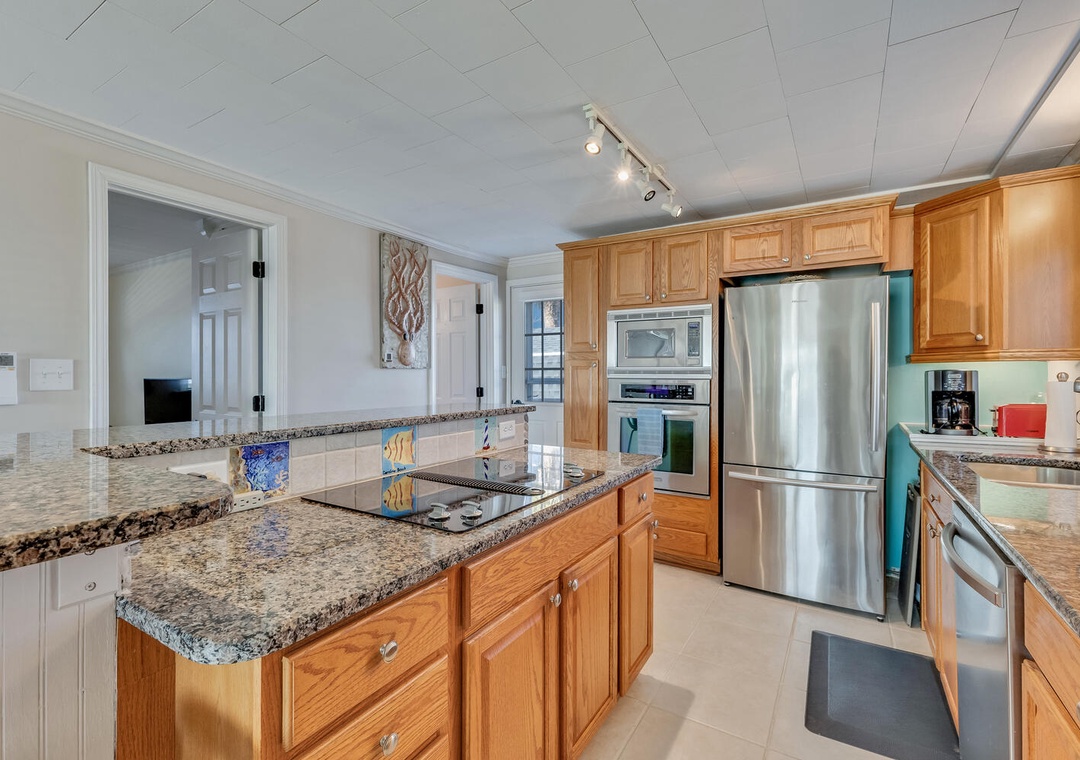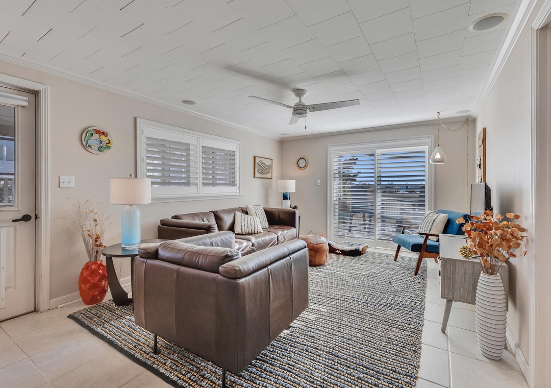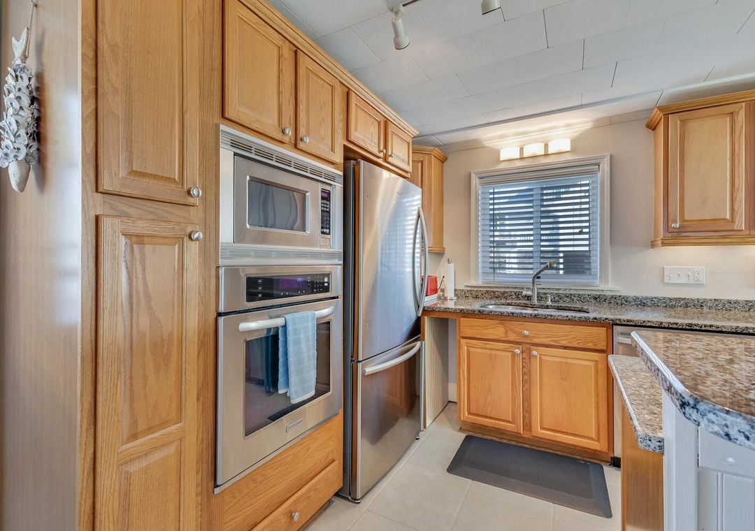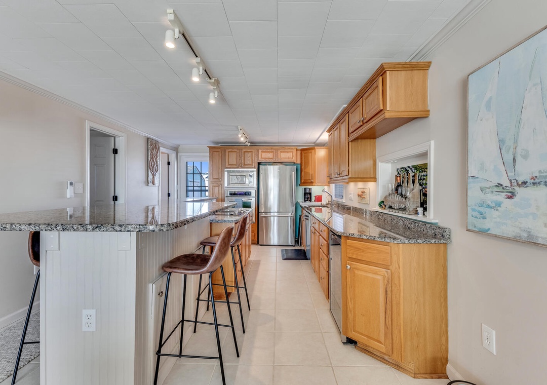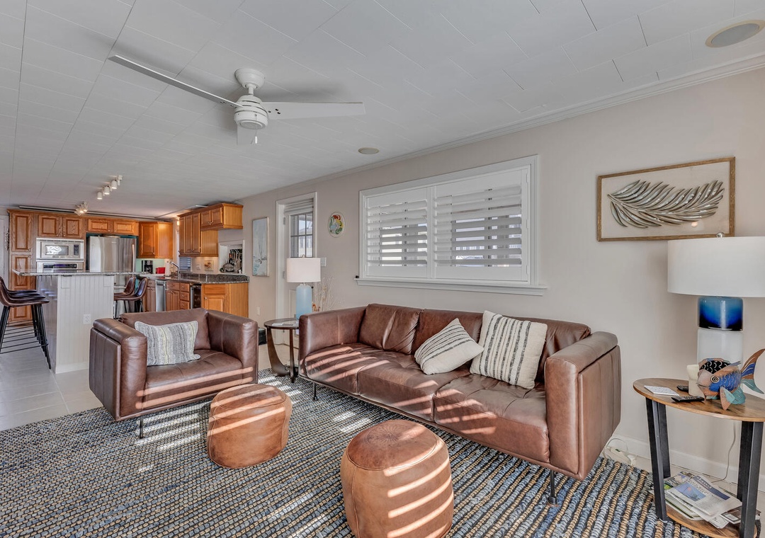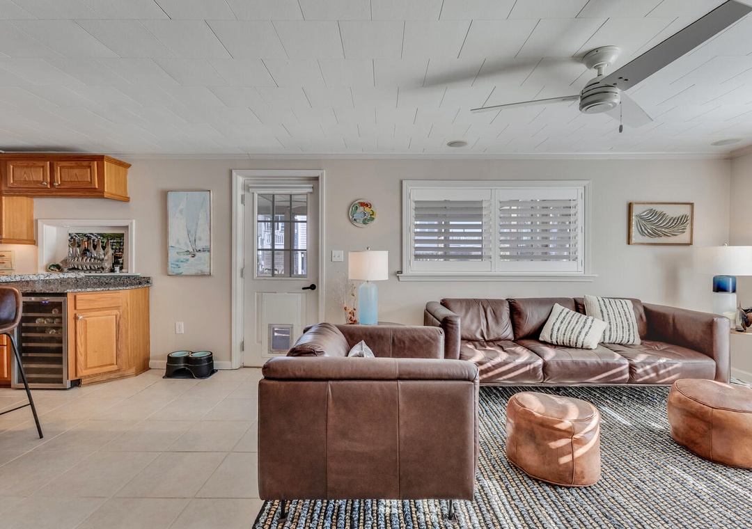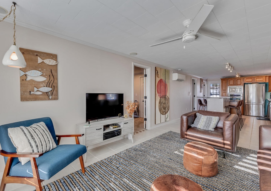 It's open-concept living and dining with cozy seating, a flat-screen TV, and lots of natural light. There is plenty of seating at the bar. A fully equipped kitchen with stainless steel appliances, granite countertops, and all the essentials for home-cooked meals. It has a Jenn-air cooktop and wall oven, microwave, wine cooler, brand new Mitsubishi HVAC, and a brand new water heater for peace of mind.