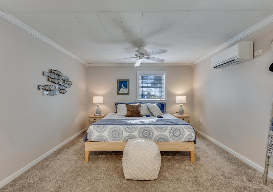 The outdoor space includes a large screened porch with plenty of seating. Continue on to the outside deck with a beautiful view of the surrounding area and canal. There's seating for 4 under the "Blue Sails". During the summer season, Carolina Beach sponsors weekly fireworks. You'll have a ring-side, unobstructed view to watch the festivities. There is off-street parking for 2.