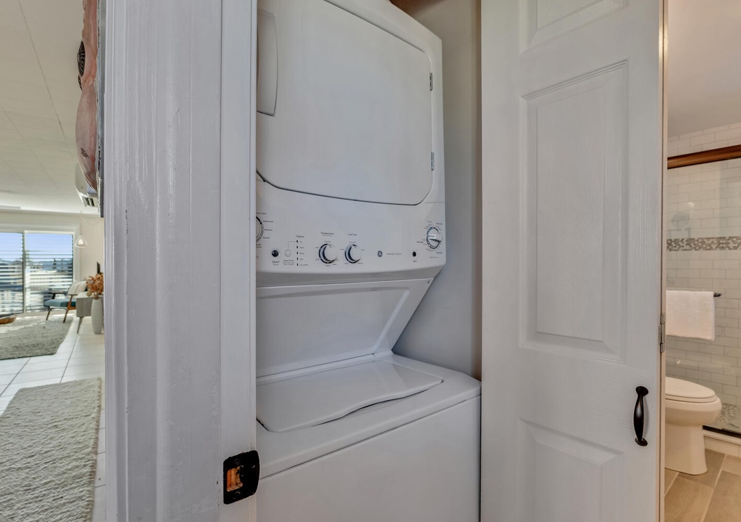 It has a full bathroom with a large, tiled shower, modern fixtures and amenities. Washer/dryer and overhead heater.