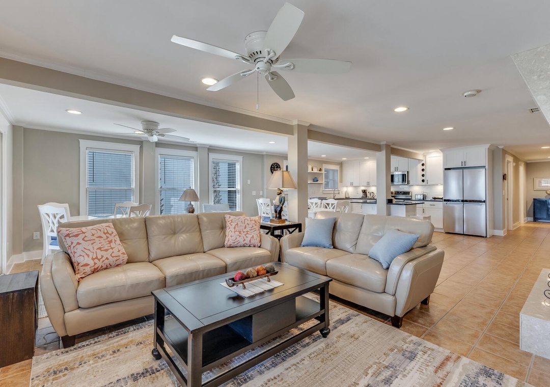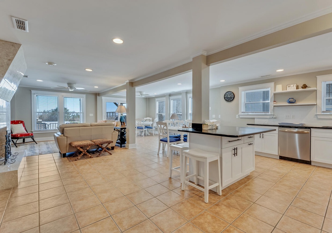 * Open-concept living, dining, & kitchen area