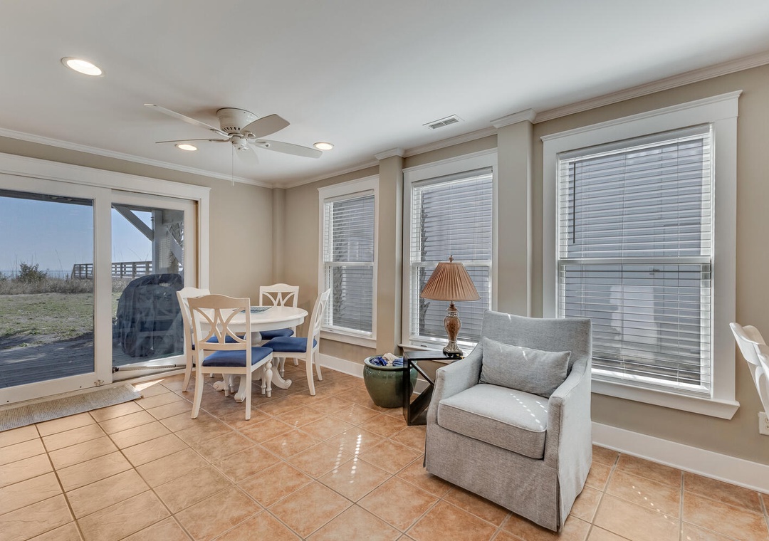 Boracay Lower is a stunning oceanfront retreat, offering a spacious 3-bedroom layout that comfortably accommodates up to 8 guests. This ground-floor unit is part of the larger 10-bedroom Boracay property, with the upper level available as a separate rental in the off-season. Designed with an open floor plan, the living, dining, and kitchen areas create an inviting space for relaxation and connection. Step directly from your oceanfront door to the private beach access and enjoy the pristine white sands of Kure Beach.