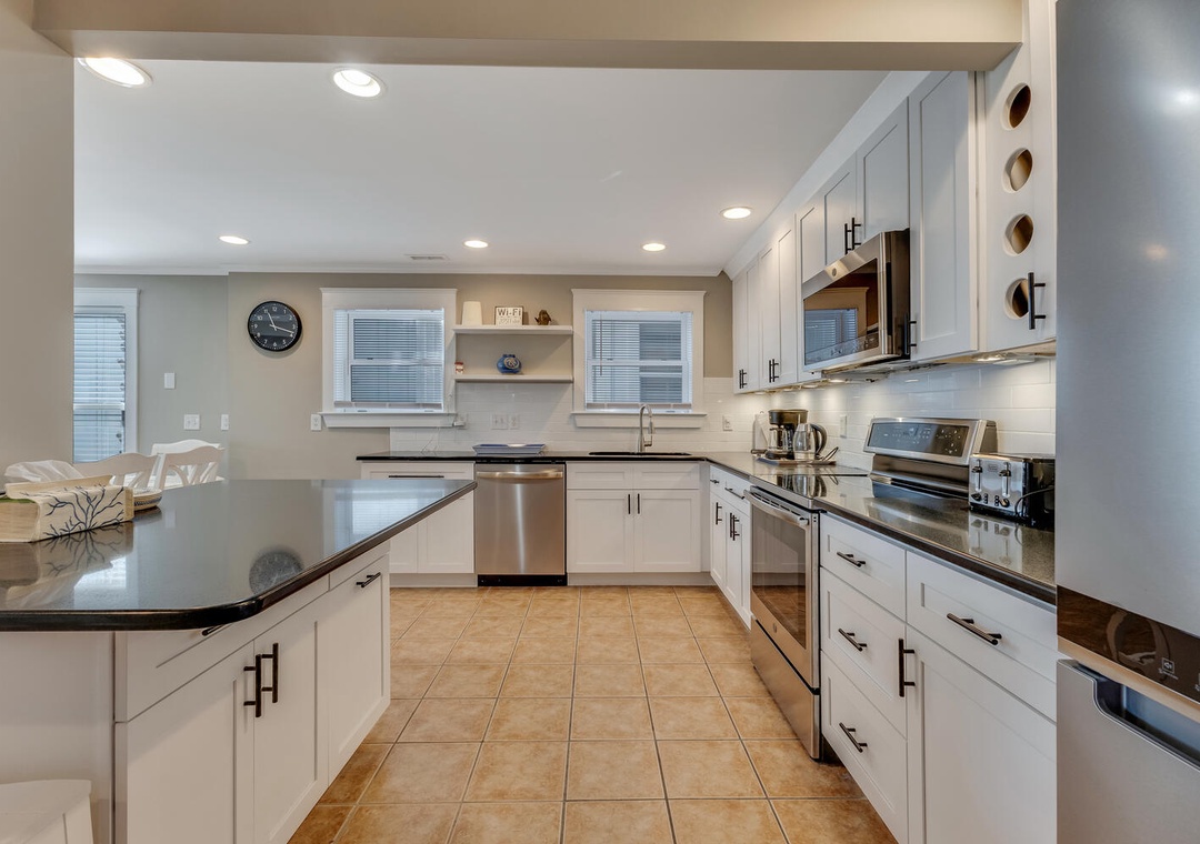 * Fully stocked kitchen with modern appliances