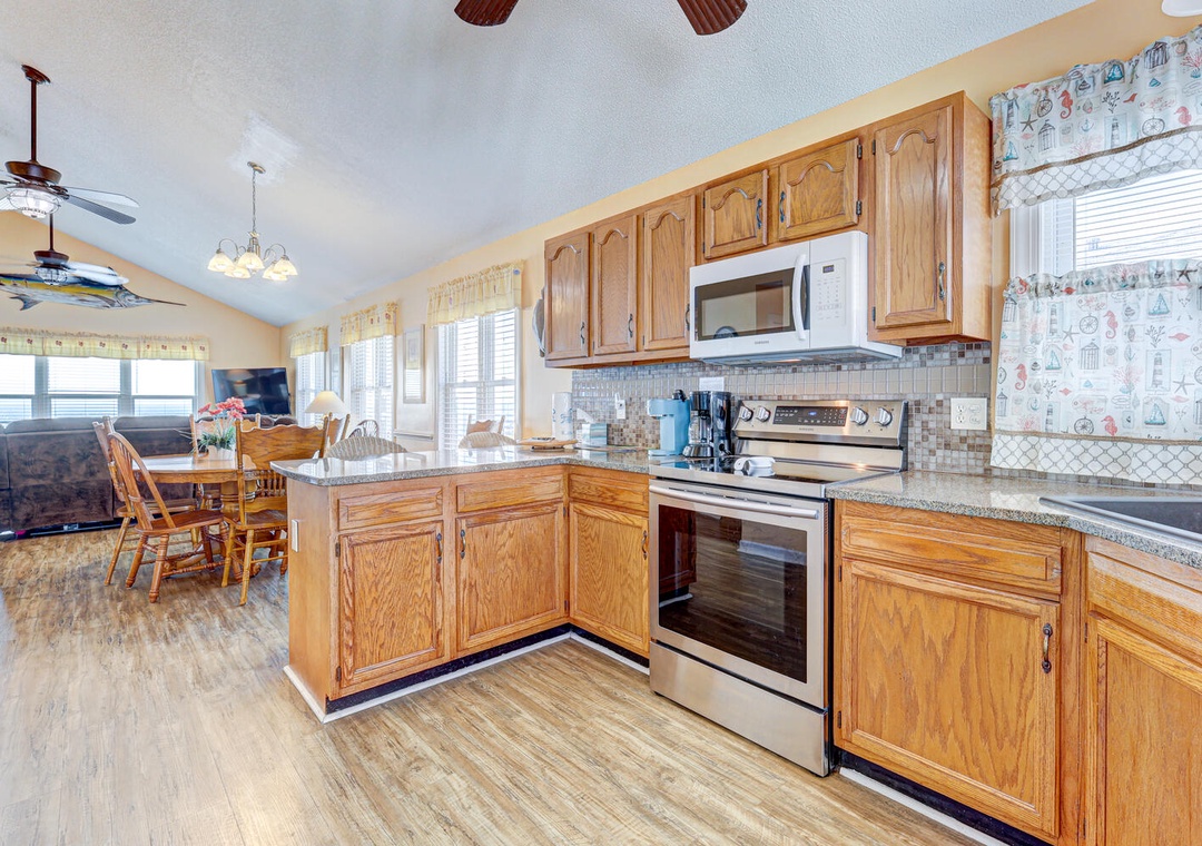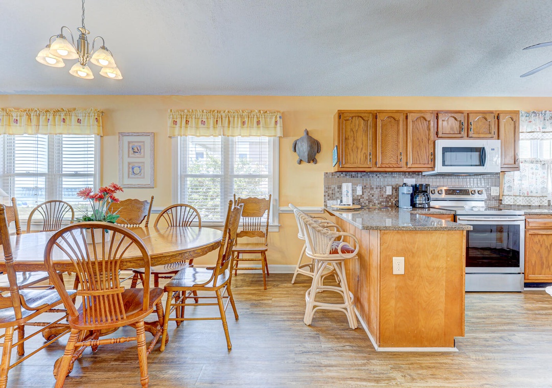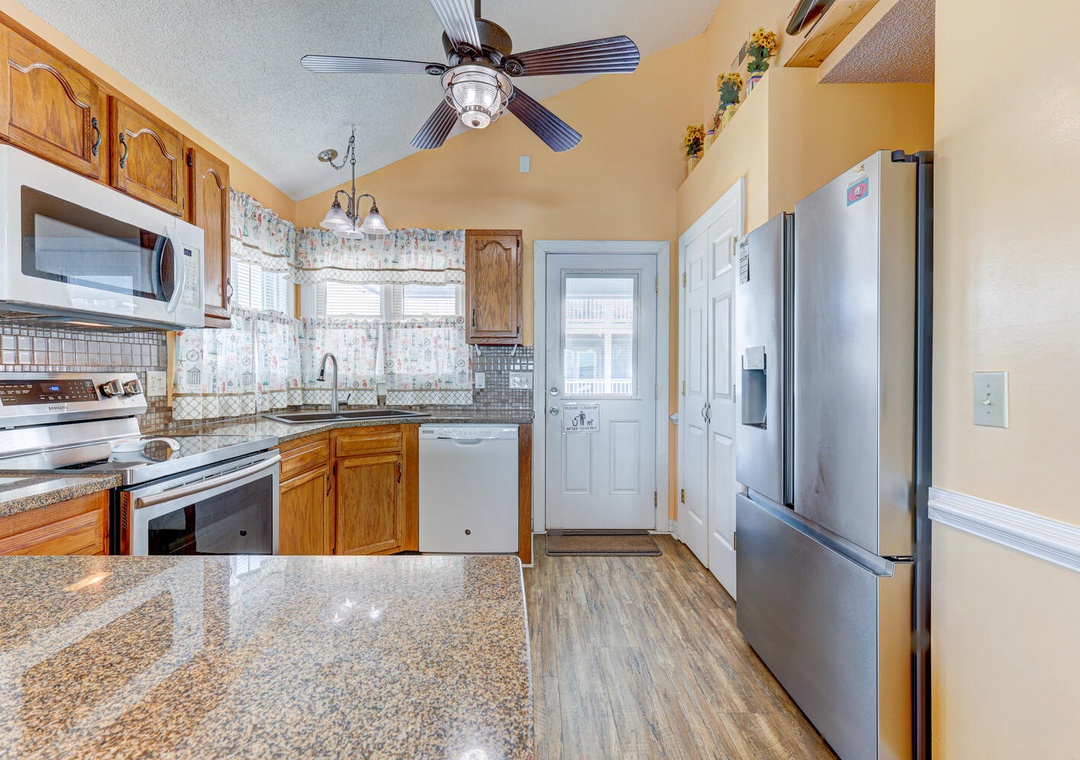 Nice beachfront rental on the Kure Beach boardwalk. Centrally located to most Kure Beach has to offer so park your car and walk to dining, the pier, etc. This kitchen was well stocked and well appointed for meal prep at the house. We enjoyed the fabulous view watching waves from Tropical Storm Imelda for our first two days, then sun the remainder. Good location for trips to Carolina Beach and Southport via the ferry. Plenty of room for our family and dog. Would definitely go back!- Reviewed On: 10/7/2025
