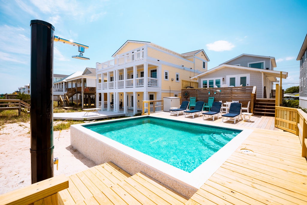 Step outside to enjoy multiple private decks with ample outdoor seating, where you can take in ocean views and refreshing sea breezes. The private pool is perfect for a swim any time of day, and the outdoor shower makes it easy to rinse off after enjoying the beach, just steps away from your door.