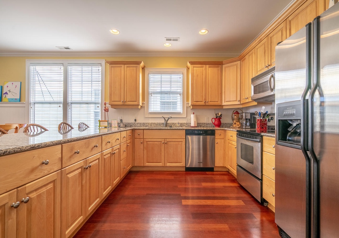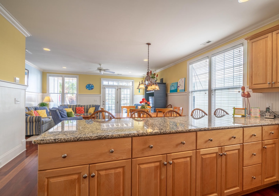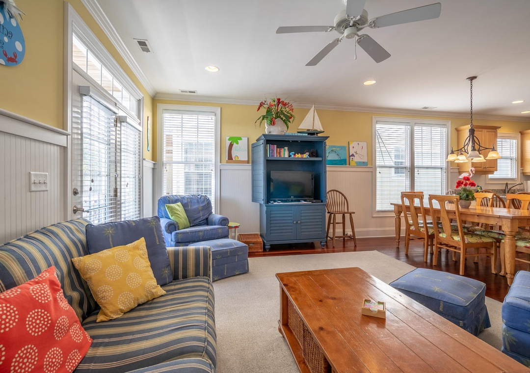 Families can also walk to nearby restaurants including the Ocean View Diner, the famous Freddie’s Italian Restaurant, Jack Mackerels Island Grill, and Big Daddy’s Seafood, along with Beach House Burgers, Happy Hippies Java Jut, and the Islander Kwik Mart (ice cream).