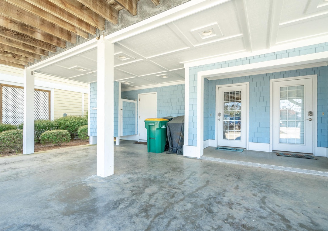 Carolina Blue is one side of a duplex (two sides) and amenities such as the outdoor shower, garbage/recycling bins, and parking are not shared with the other side of the duplex. Guests should enjoy the dedicated amenities on the Carolina Blue side only.