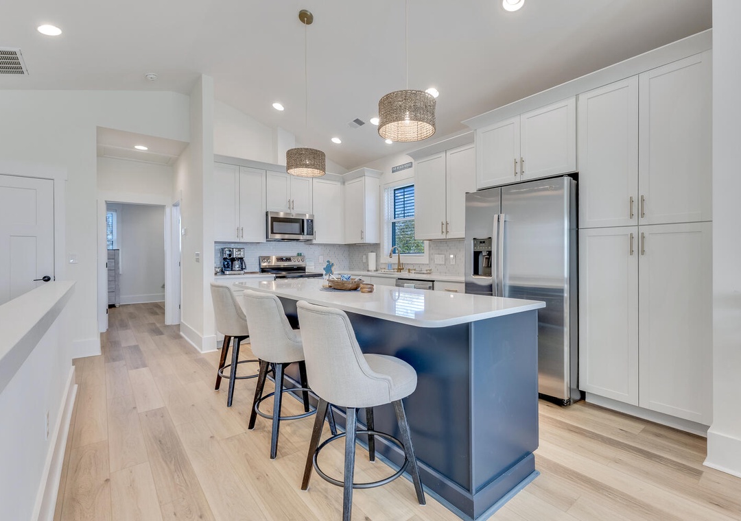 Four well-appointed bedrooms and three full bathrooms provide plenty of room for everyone to unwind. The primary suite is a serene retreat with a private deck. The additional bedrooms are spacious and comfortable, offering flexible sleeping arrangements. Each room is designed with relaxation in mind!