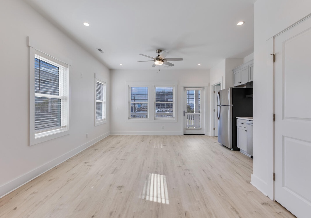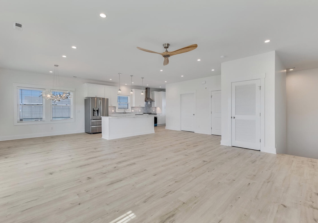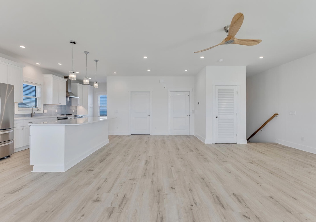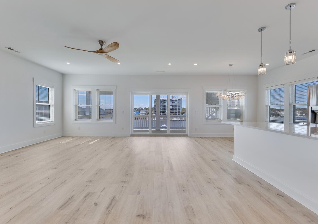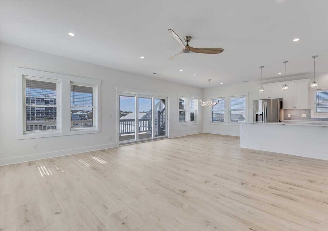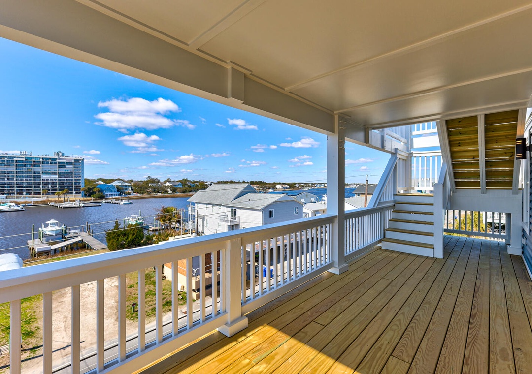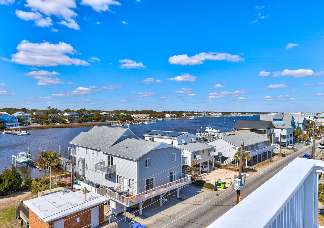 The top floor features a bright and expansive living room designed for gathering after a day at the beach. The well-furnished kitchen offers ample counter space, modern appliances, and everything you need to prepare memorable meals. From this level, you’ll enjoy beautiful views of both the ocean and the canal, bringing the best of the island scenery right into your living space.