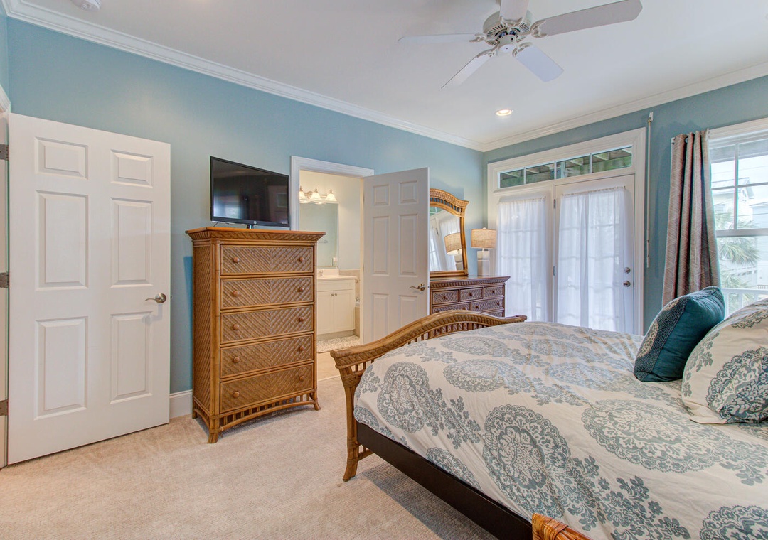 2nd Floor Access to Deck with Seating Flat Screen TV Ceiling Fan