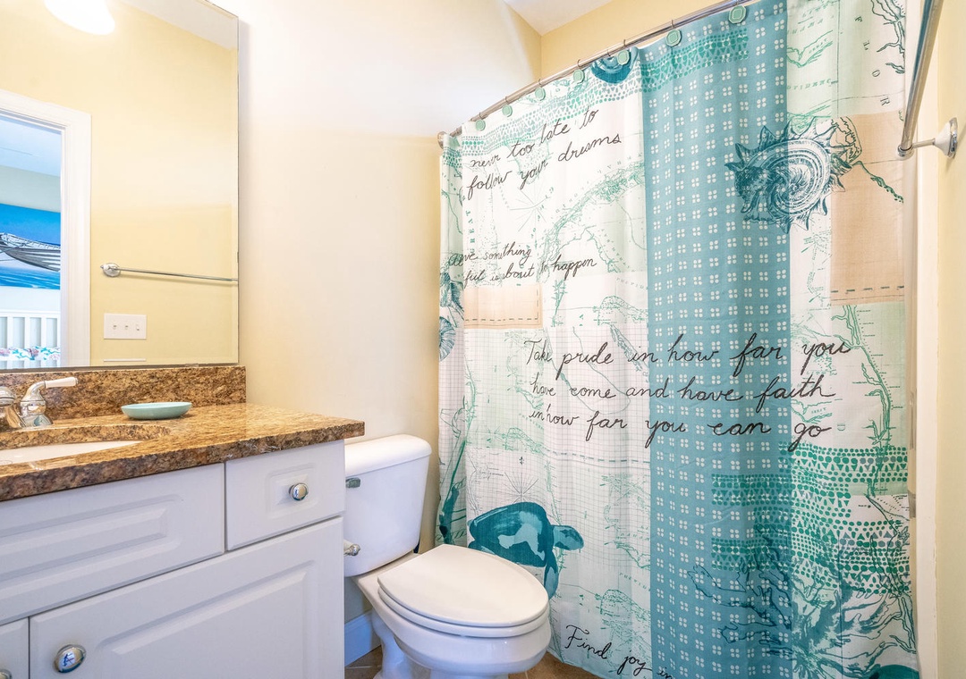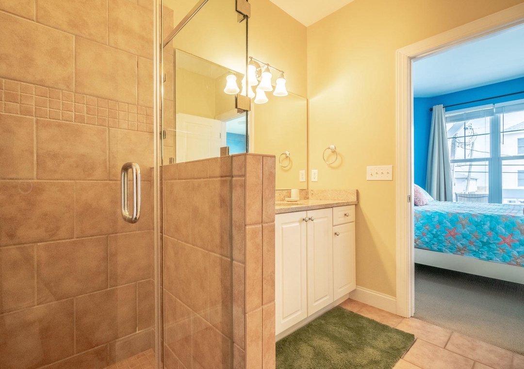 With five bedrooms, including two master suites, everyone will have their own space to unwind. The first master suite on the 2nd floor offers ocean views, a king bed, a private bathroom with a Jacuzzi tub and separate shower, and a private balcony. The second master suite also features a king bed, a private bath, and a balcony. Three additional bedrooms include a king bed, a queen bed, and a bunk room with full-sized beds and a twin trundle. The home has 4.5 bathrooms, ensuring plenty of space for everyone.