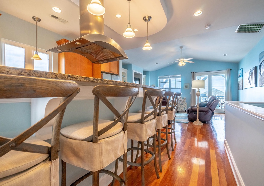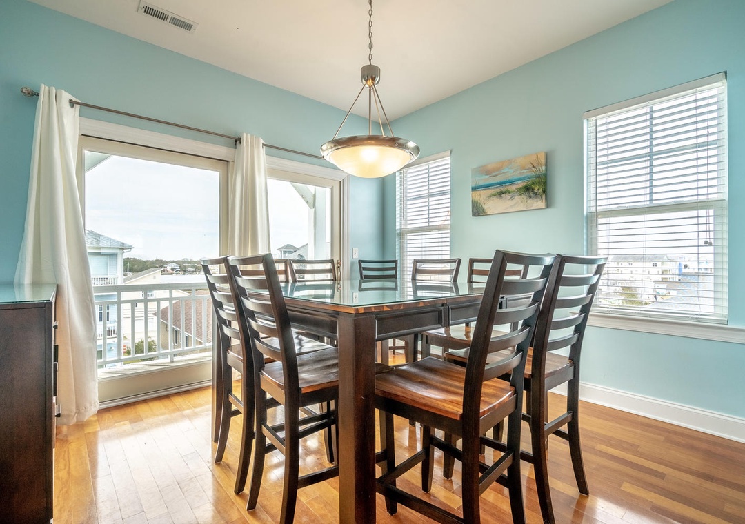 This spacious oceanfront home offers stunning ocean views and plenty of amenities for your perfect beach getaway. With central air, complimentary Wi-Fi, cable TV, and parking for 3-4 vehicles, the home is designed for both comfort and convenience. Relax on the private balcony or deck, complete with deck chairs and a gas grill, perfect for outdoor dining and soaking in the coastal breeze. The living room, located on the 3rd floor, features a flat-screen TV, seating for seven, two rocking chairs, and access to an ocean-view balcony.