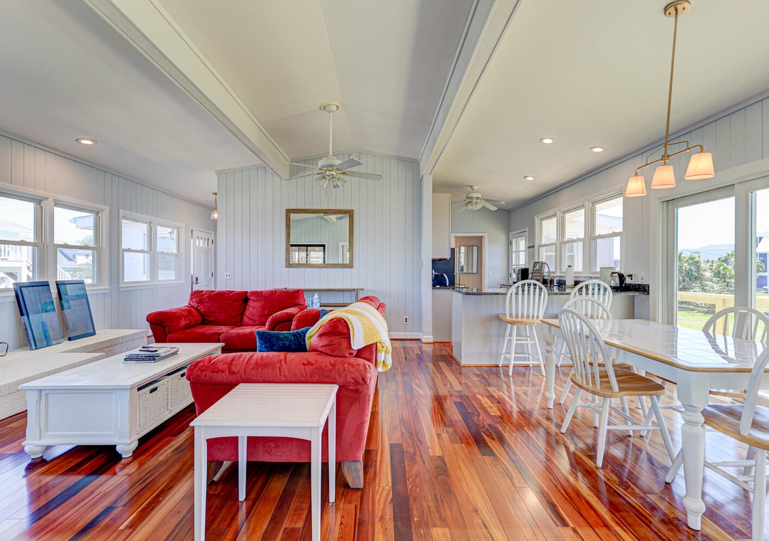 Absolutely amazing spot on the bay! The kitchen and living room look out thru the beautiful sunroom(all windows/sliders) onto the deck , dock and bay. We were there mid November- the beach-3 blocks away) was chilly but perfect for walks. The large back deck with couch and cushioned chairs,giant umbrella-and grill isperfect- sunsets, boat watching ,bird watching.. floating dock is great, would hang out down there and let our vizsla swim. Full kitchen was great-nice appliances -has everything u need. Dinging table, 3 couches in living room all stylish and clean, sun room also very clean and couches seem new. Well decorated and spacious. Bed rooms as advertised—comfy beds Both showers had excellent water pressure and nice and hot. Driveway easy parking, really nice neighborhood for walks. 2blocks north on bay - great dog swimming little park. Beach was beautiful, great bar /food 10 minute walk at fishing pier. Just north of pier the beach is remote /oeaceful -great 30 minute walk to end if beach at inlet(beautiful) In the mornings -20 minute walk to north end cafe/mini market for Great coffee and breakfast sandwiches . AMAZING PROPERTY! My wife and I are going to return next year and bring my daughter and her husband!- Reviewed On: 11/18/2024