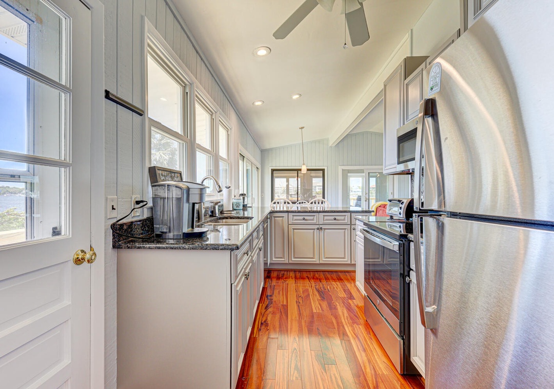 Beautiful views from the back porch, sunroom,kitchen eating space and living room! Windows all the way around overlooking the inter coastal waterway! Very peaceful and relaxing! Appreciated the large shade umbrella on back deck to enjoy the deck all day long! Master bedroom had a king bed which was awesome! Location to beach and restaurants was great!!- Reviewed On: 6/1/2024