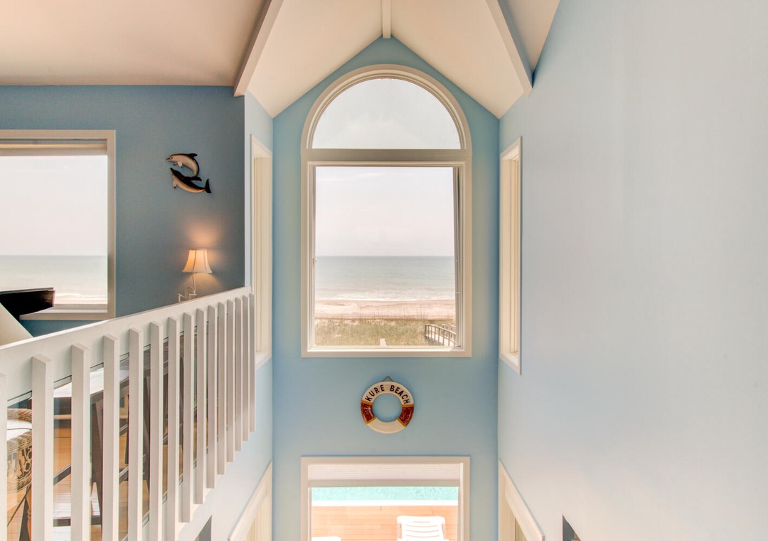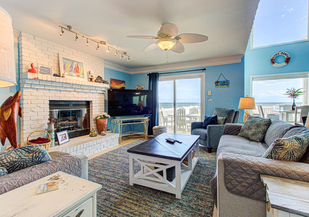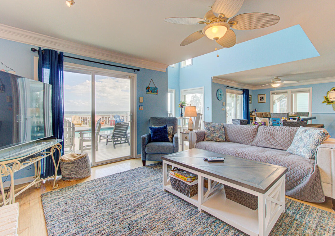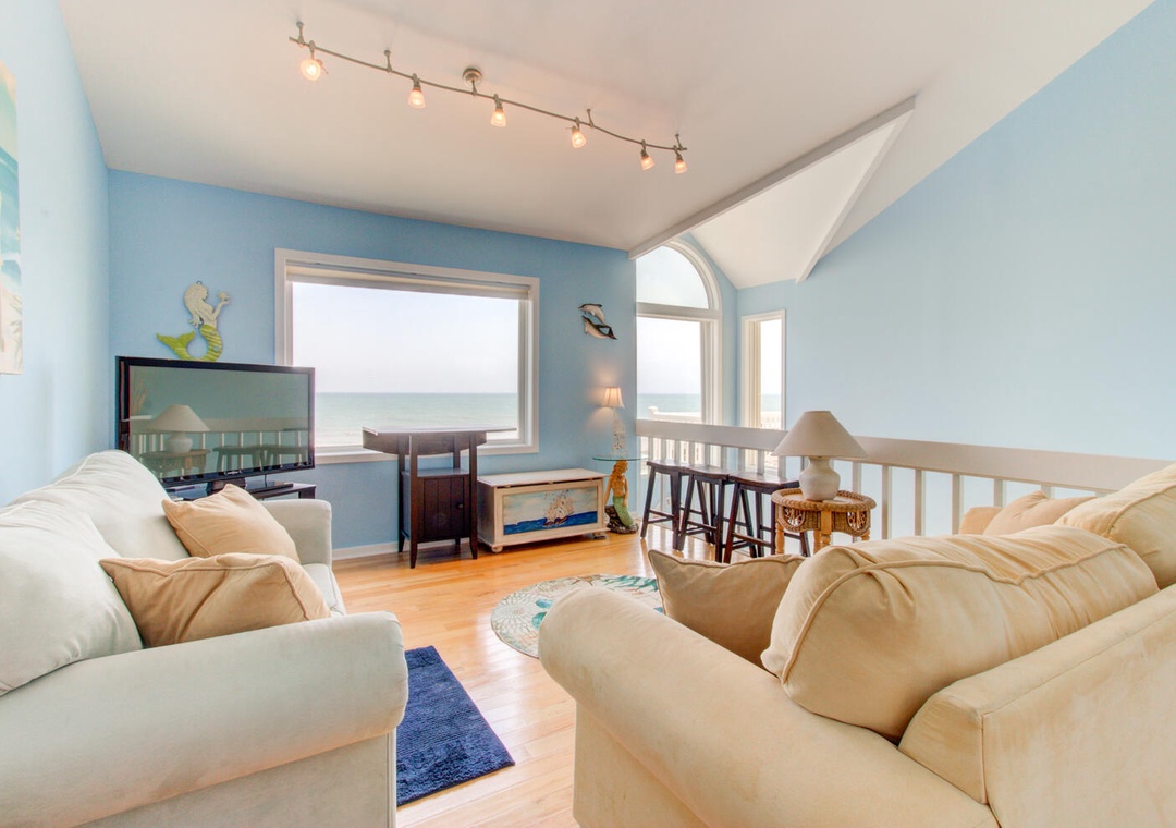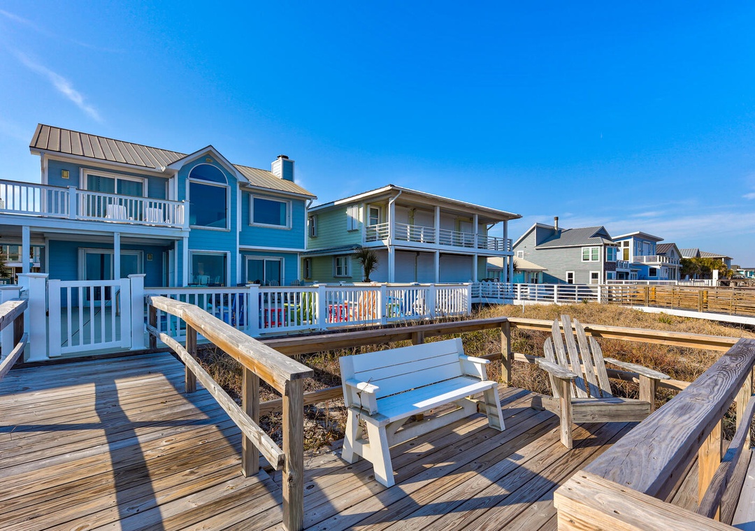 Welcome to Dolphin Run, a spacious 5-bedroom beachfront retreat that sleeps up to 15 guests, making it the perfect getaway for families and groups. Perched to capture breathtaking ocean views, Dolphin Run offers scenic vistas from two cozy den areas, the expansive kitchen, and the inviting living room on the second floor. Step outside to large oceanfront decks or take a few steps down your private beach access to enjoy the sandy shores. A convenient foot rinse on the walkway makes cleaning up after a day at the beach effortless.