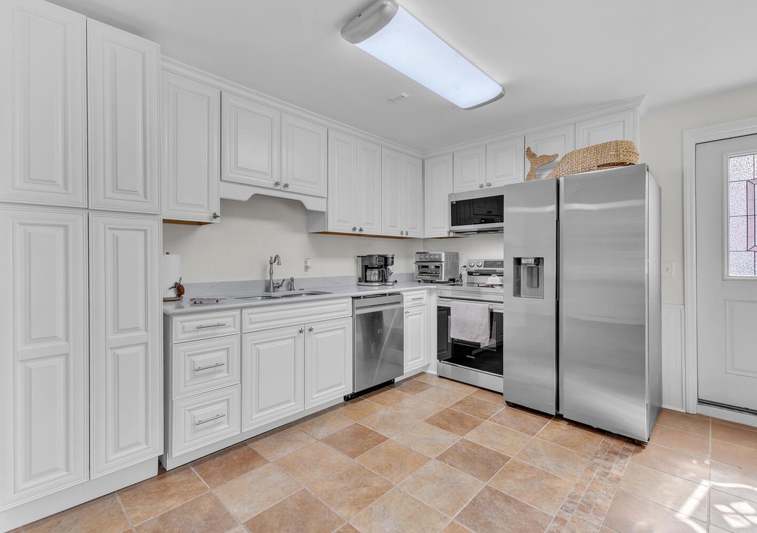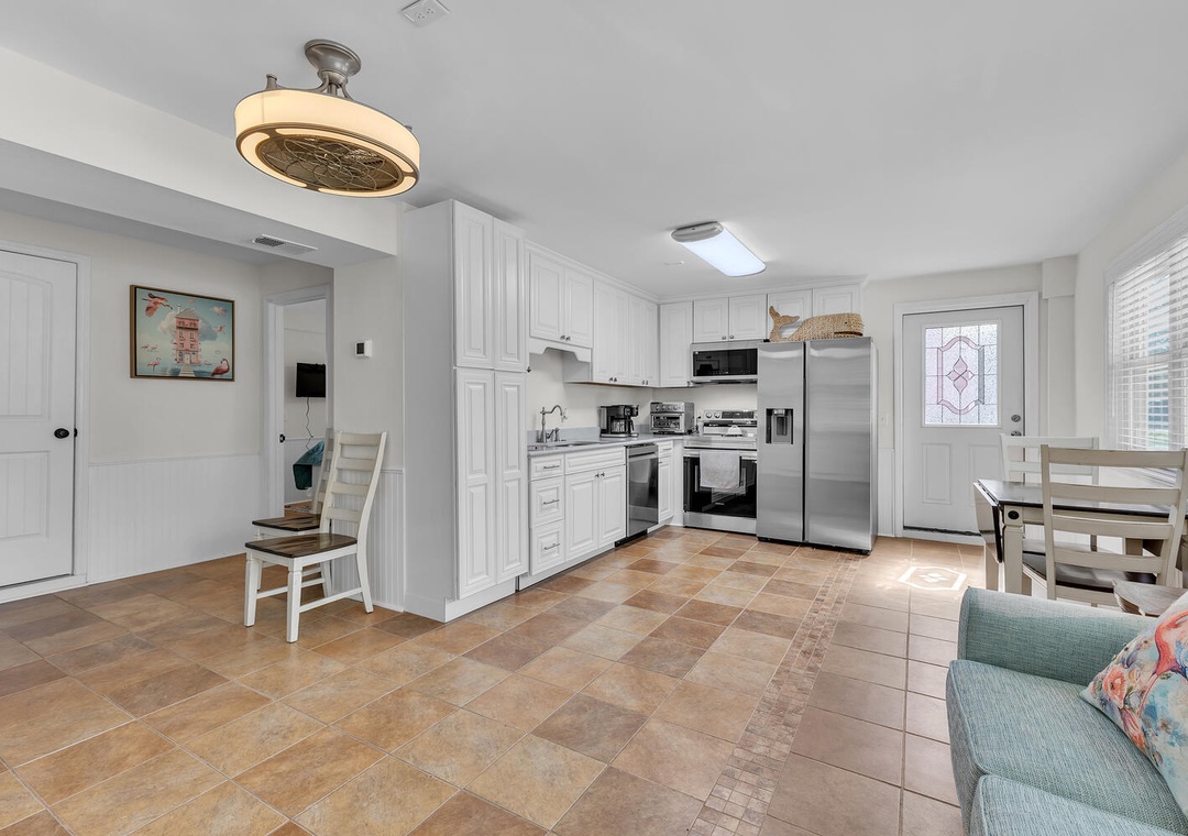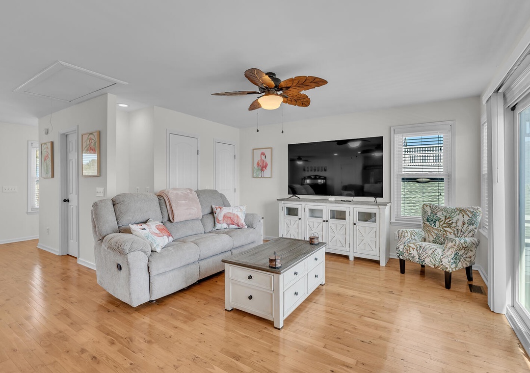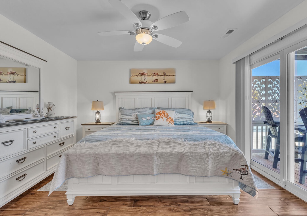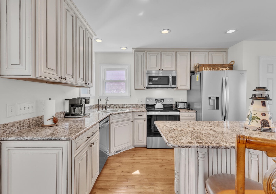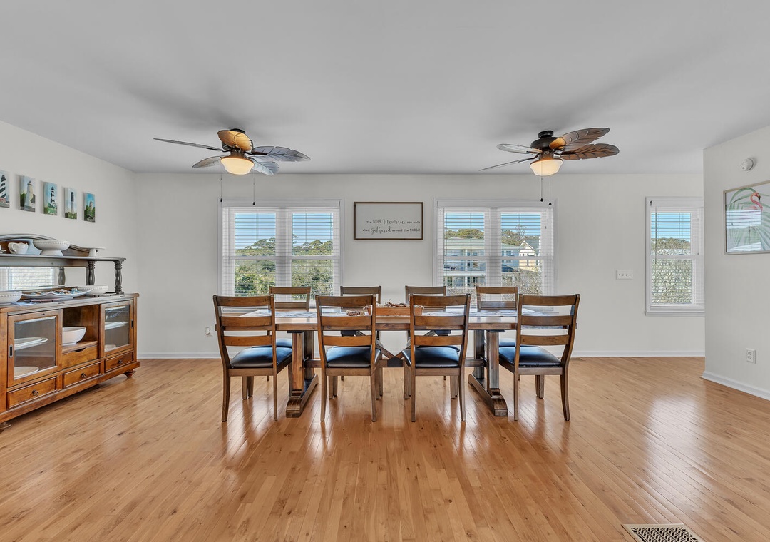 The main level features a bright, open living and dining area and a fully stocked kitchen for preparing fresh local seafood or family meals. With five generously sized bedrooms and four full bathrooms, everyone has room to unwind in comfort and privacy.