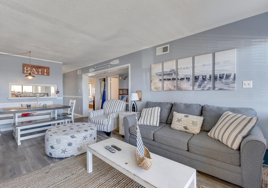 The condo offers a comfortable, welcoming space to unwind after a day of sun and fun. With two well-appointed bedrooms and two full bathrooms, it’s perfect for families, couples, or small groups seeking a relaxing coastal getaway. The thoughtfully designed layout provides plenty of room to recharge while still feeling cozy and connected.