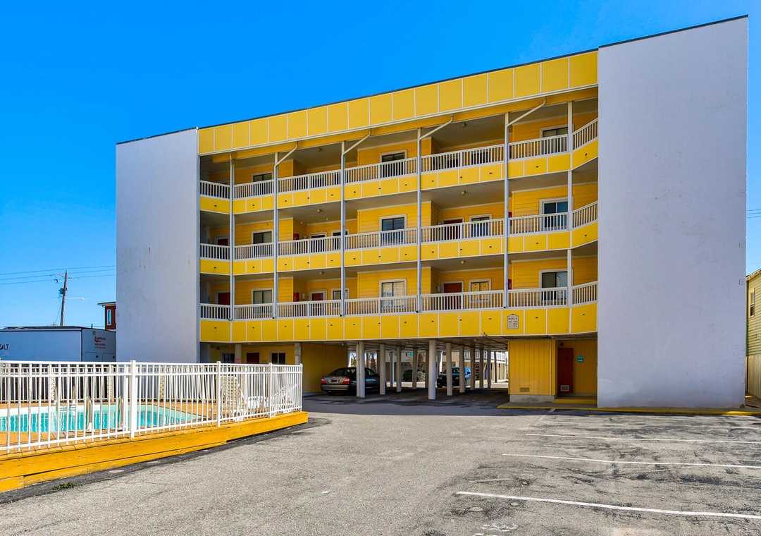 Beach days are effortless with public beach access just a block away, making it easy to start your mornings with ocean breezes and end your evenings with sunset strolls along the shore. When you’re not at the beach, take a refreshing dip in the small community pool or relax on-site with your favorite people — including your furry companions, as this property is pet friendly.