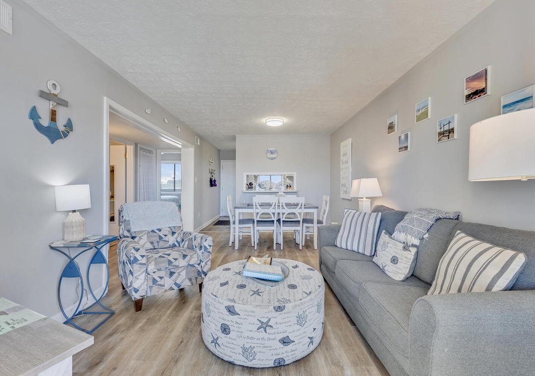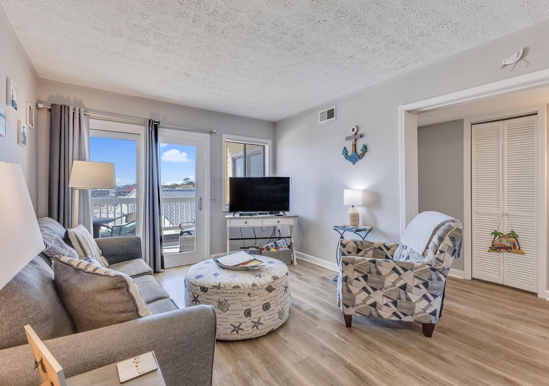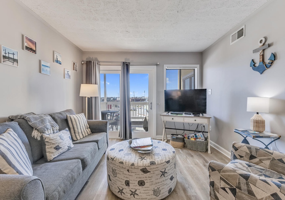 Inside, you’ll find a welcoming living space designed for relaxation after a day in the sun. Step out onto your private deck, where you can take in ocean and marina views. The condo features two comfortable bedrooms, a fully equipped kitchen, and a cozy living area, making it perfect for families or small groups.