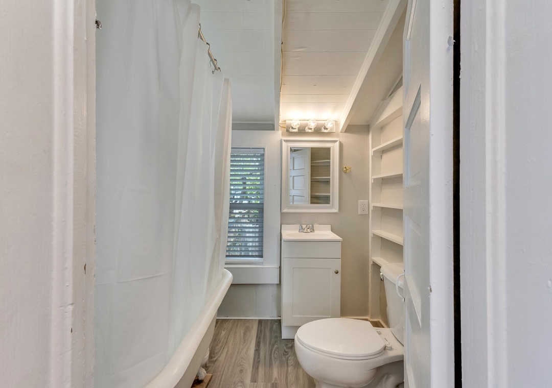 Also included is a charming backyard apartment—ideal for in-laws, friends, or additional guests. This separate living space features a queen bedroom, kitchen, living room, and a full bath with a clawfoot tub/shower combo, offering added flexibility for your group.
