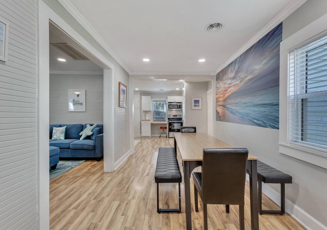 Step into Harper’s Haven, a timeless 1936 Carolina Beach cottage that’s been thoughtfully refreshed to blend coastal character with modern convenience. From the moment you arrive, the screened-in porch invites you into a space full of warmth, featuring new lighting, fixtures, flooring, and fresh paint throughout. The bright living room flows seamlessly into a formal dining area, creating the perfect setting for family meals or relaxed evenings in.