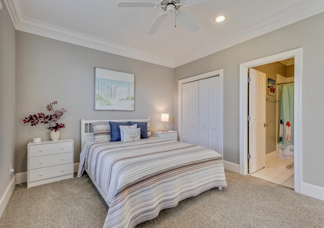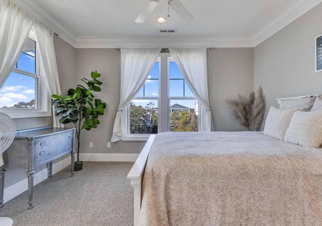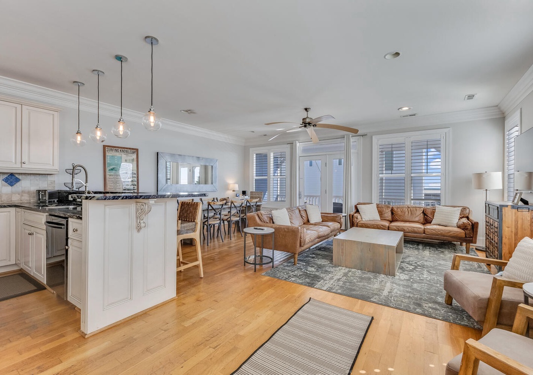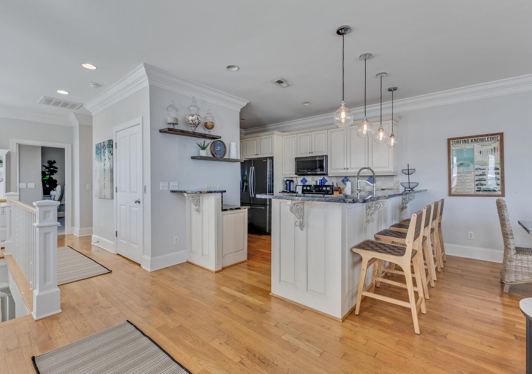 Located on the tranquil end of Bowfin Lane in Carolina Beach, this one-of-a-kind home blends upscale design with beachside ease. Inside you’ll find wide plank hardwood floors, a gourmet kitchen with stainless steel appliances and quartz counters, and a balcony overlooking the sand and surf. Four bedrooms and four full baths make this ideal for a family or group of four. Just a 2-minute walk takes you to golden sand and surf; 5-minutes and you’re enjoying burgers, tiki drinks or live music at the boardwalk.