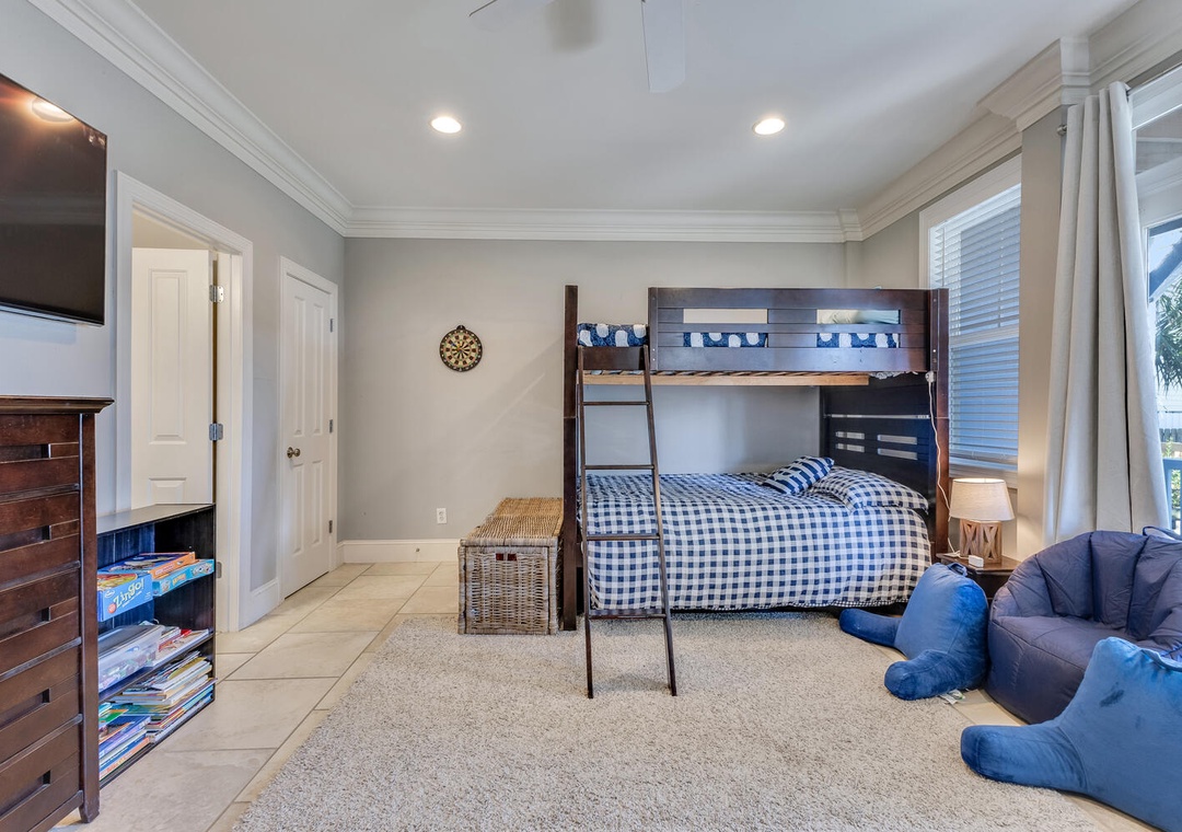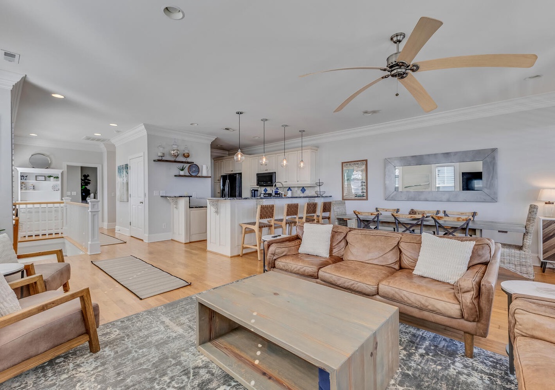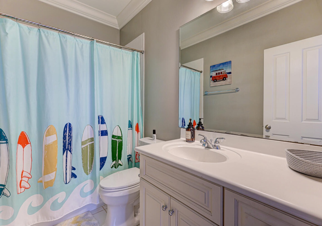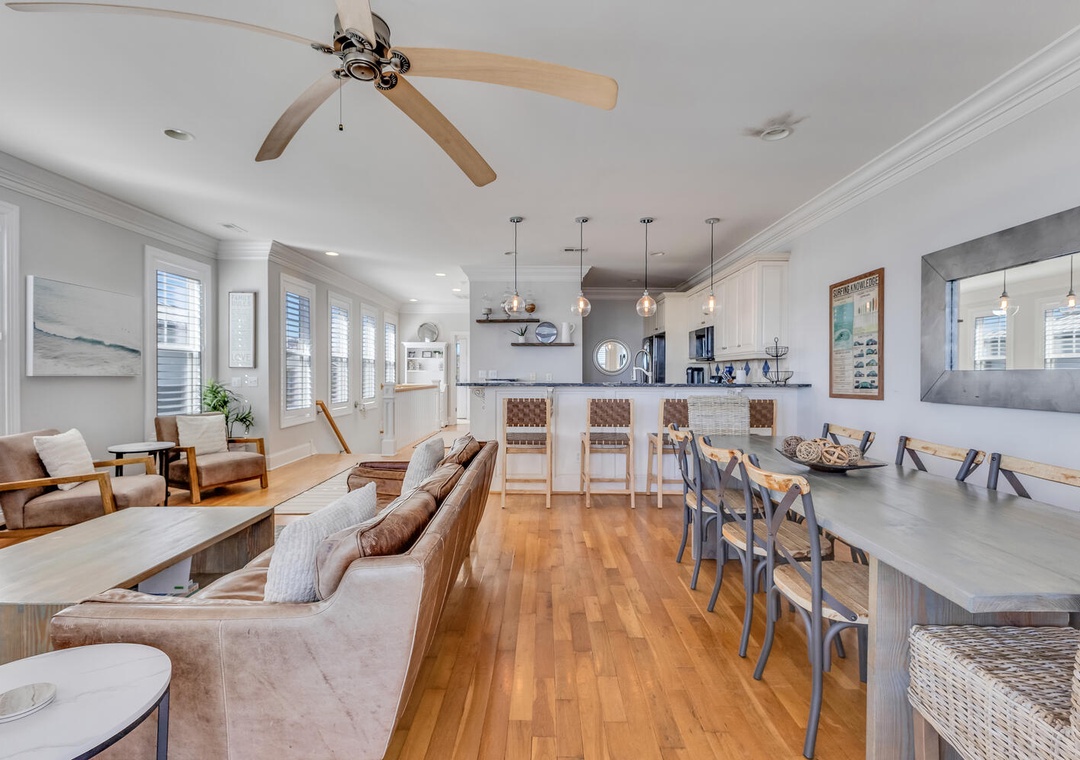 Located on the tranquil end of Bowfin Lane in Carolina Beach, this one-of-a-kind home blends upscale design with beachside ease. Inside you’ll find wide plank hardwood floors, a gourmet kitchen with stainless steel appliances and quartz counters, and a balcony overlooking the sand and surf. Four bedrooms and four full baths make this ideal for a family or group of four. Just a 2-minute walk takes you to golden sand and surf; 5-minutes and you’re enjoying burgers, tiki drinks or live music at the boardwalk.