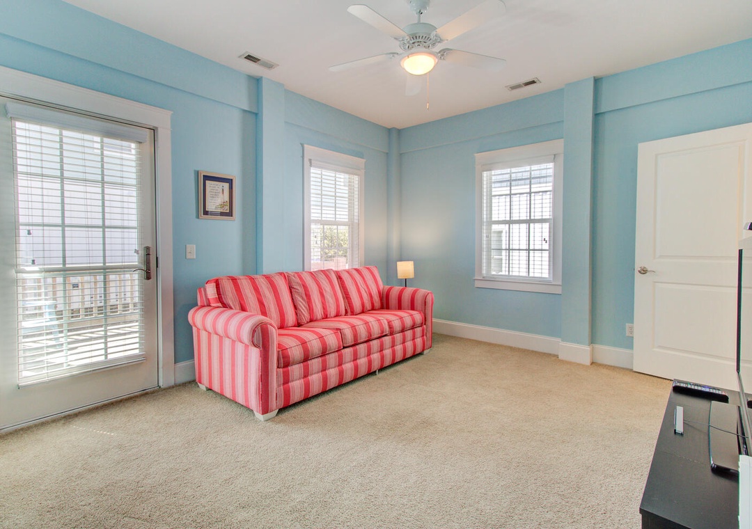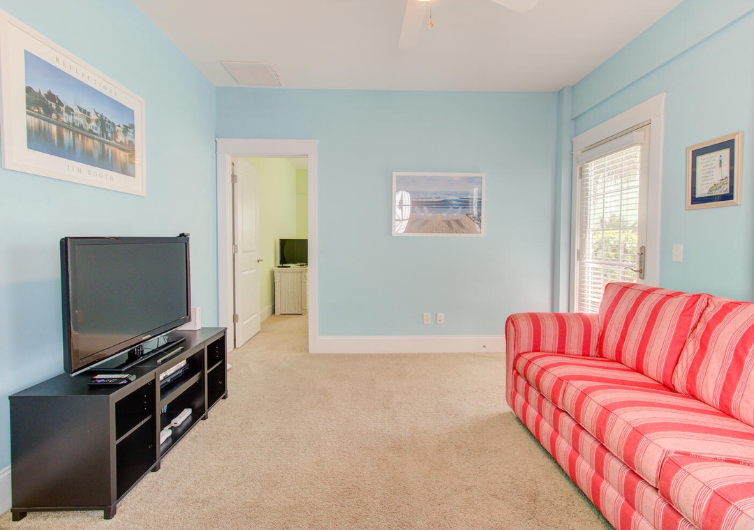 2nd Floor Side View Flat Screen TV with Roku Ceiling Fan