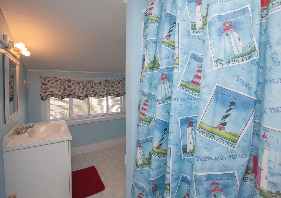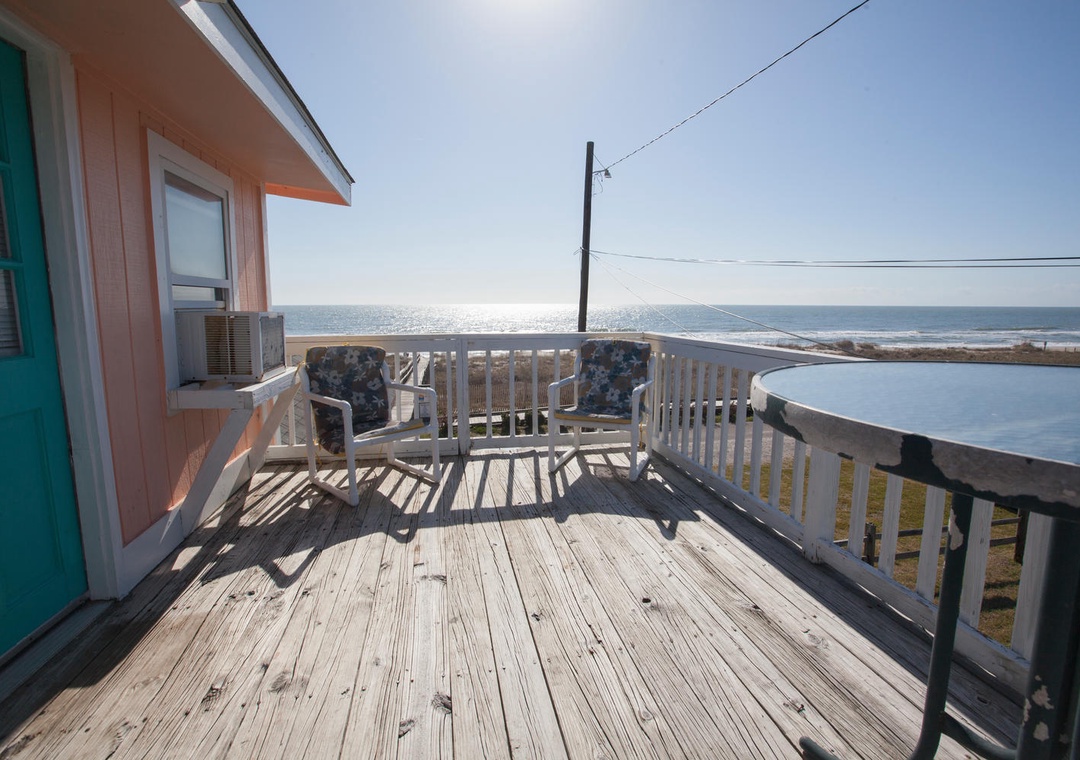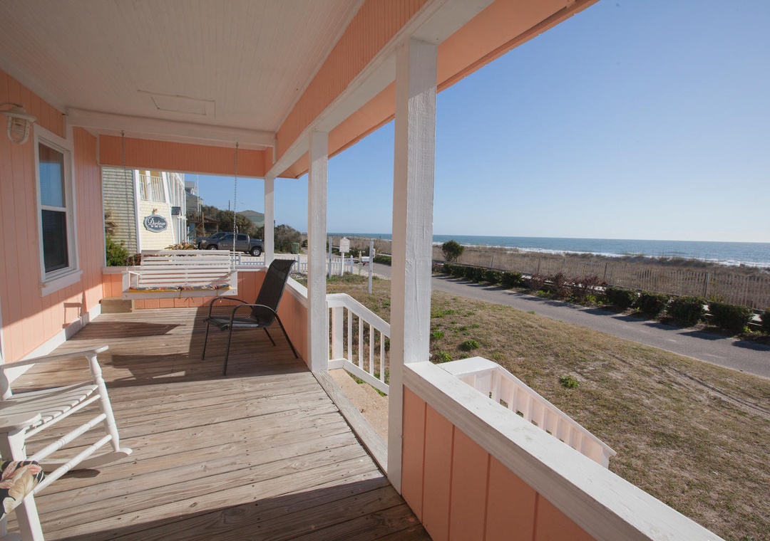 The house features ample space for gathering and entertaining, including a spacious oceanfront deck on the second floor and a welcoming porch on the first floor, complete with rocking chairs and breathtaking views of the Atlantic. A gas grill provides the perfect setup for outdoor dining and sunset barbecues.