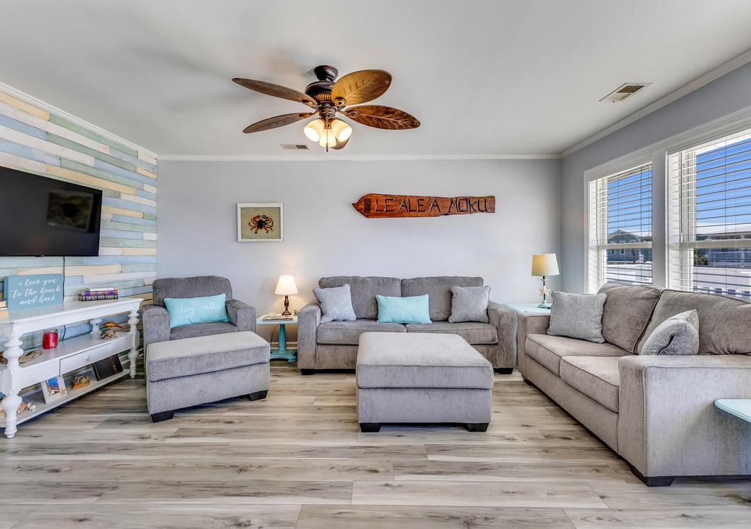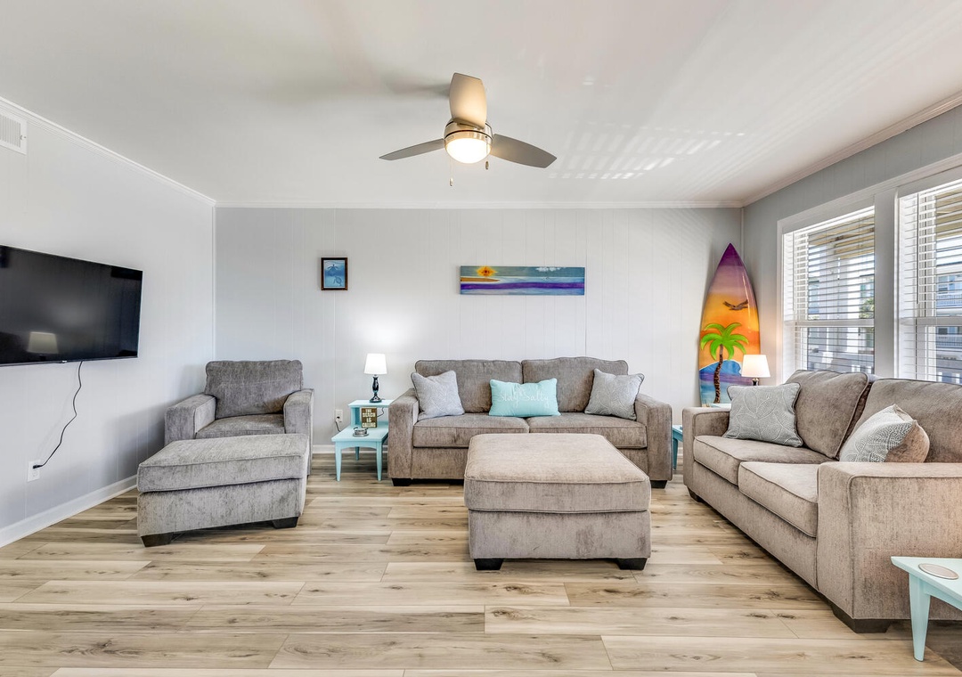 Step outside and take a short stroll to the shoreline, where sun, sand, and surf awaits. there is also a bocce ball court at the home for easy access fun! This suite offers a peaceful escape while keeping you close to local shops, restaurants, and attractions.