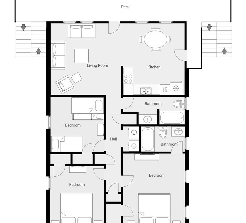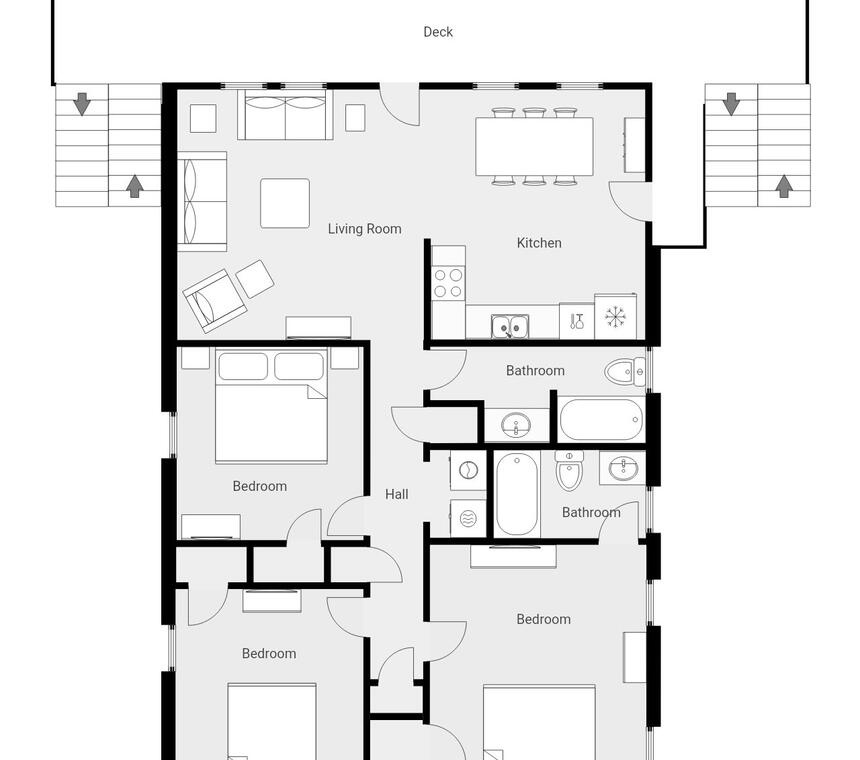 Inside, you'll find well-appointed bedrooms designed for restful nights, along with two full bathrooms per floor, for added privacy and ease. The open concept living area is perfect for relaxing or entertaining.