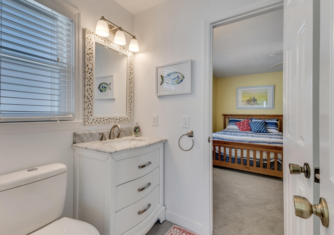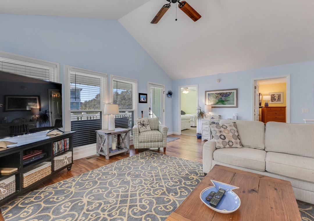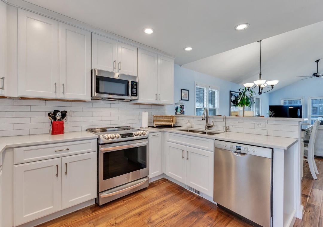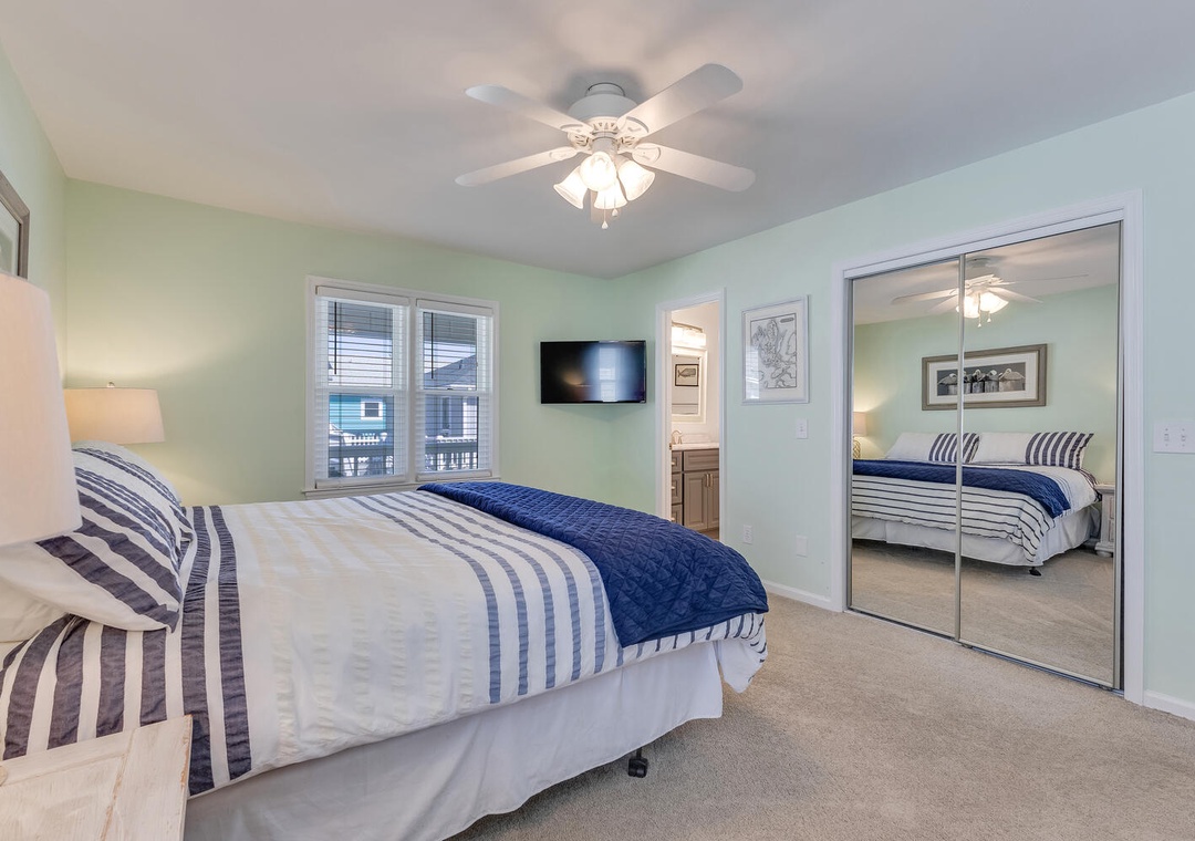 Inside, the home features a beautifully furnished and well-equipped kitchen designed to handle everything from quick breakfasts to large group meals. The generous living spaces offer plenty of room to gather, relax, and enjoy time together after a day at the beach. Each bedroom provides comfortable accommodations, creating a welcoming environment where everyone can unwind.