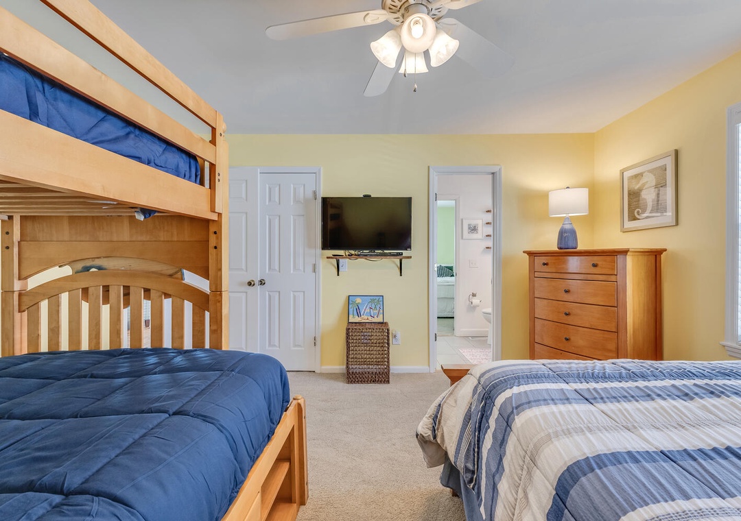 This spacious four-bedroom beach home offers the perfect setting for large families and groups, comfortably accommodating up to 16 guests. Located just two blocks from private beach access, the home provides an ideal blend of convenience, comfort, and entertainment for a memorable coastal getaway.