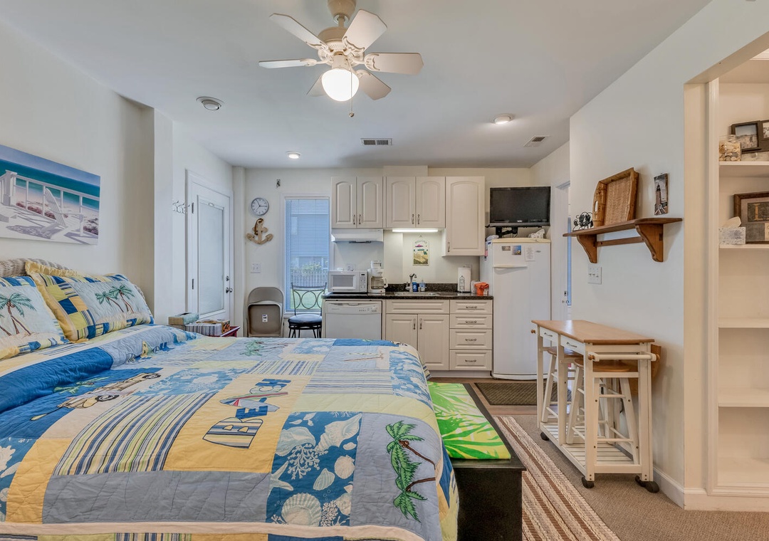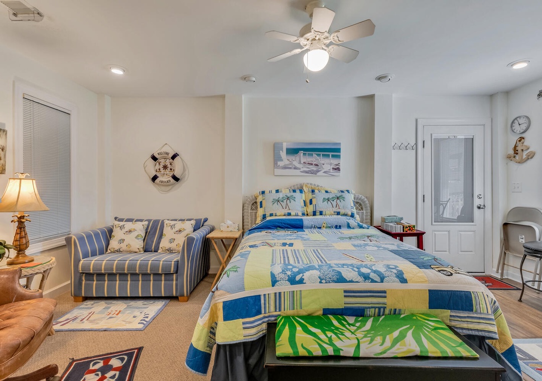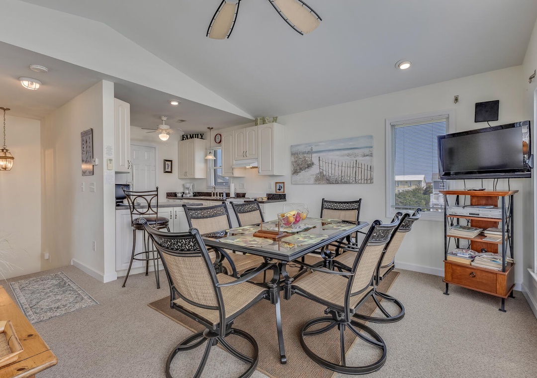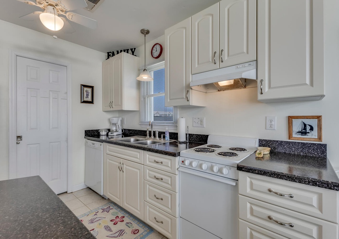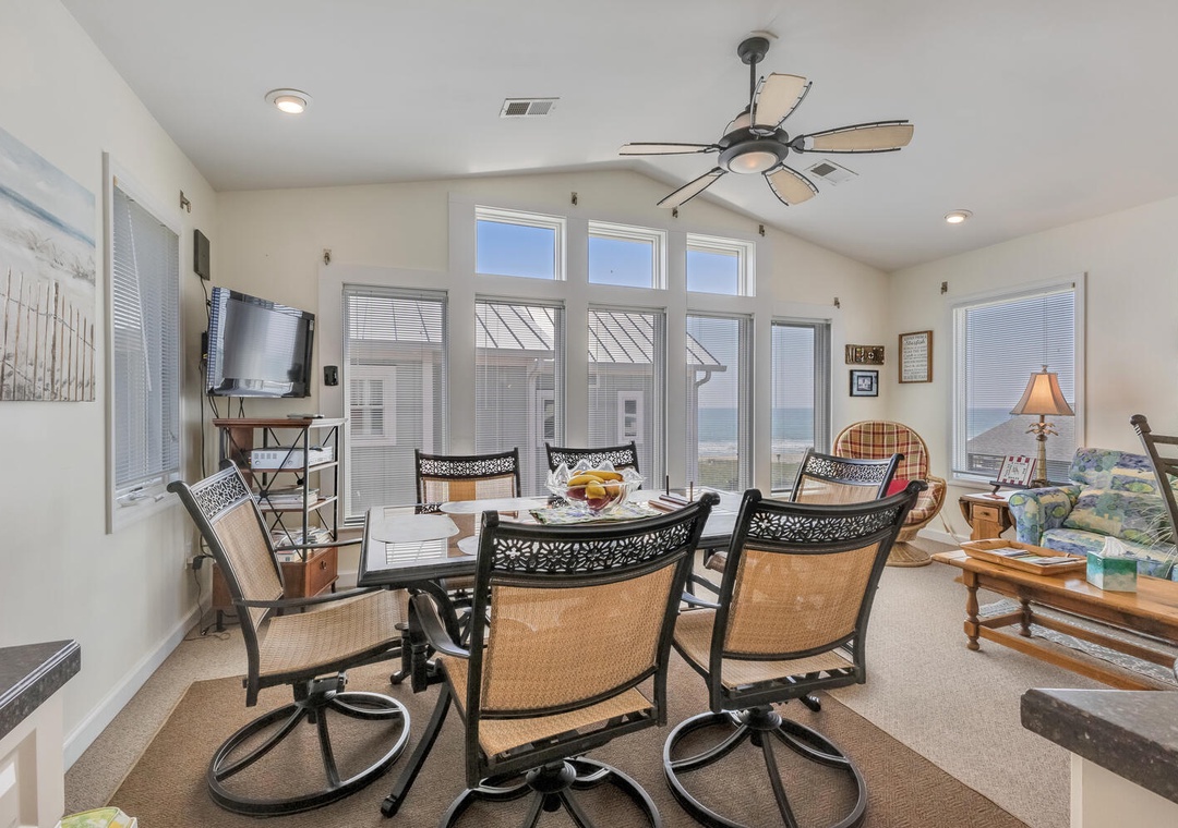 The fully equipped kitchen comes stocked with everything you need to prepare delicious meals at home, whether you're brewing morning coffee or cooking up fresh local seafood. Enjoy meals together in the dining area or out on the private patio where you can hear the waves and catch glimpses of the ocean.