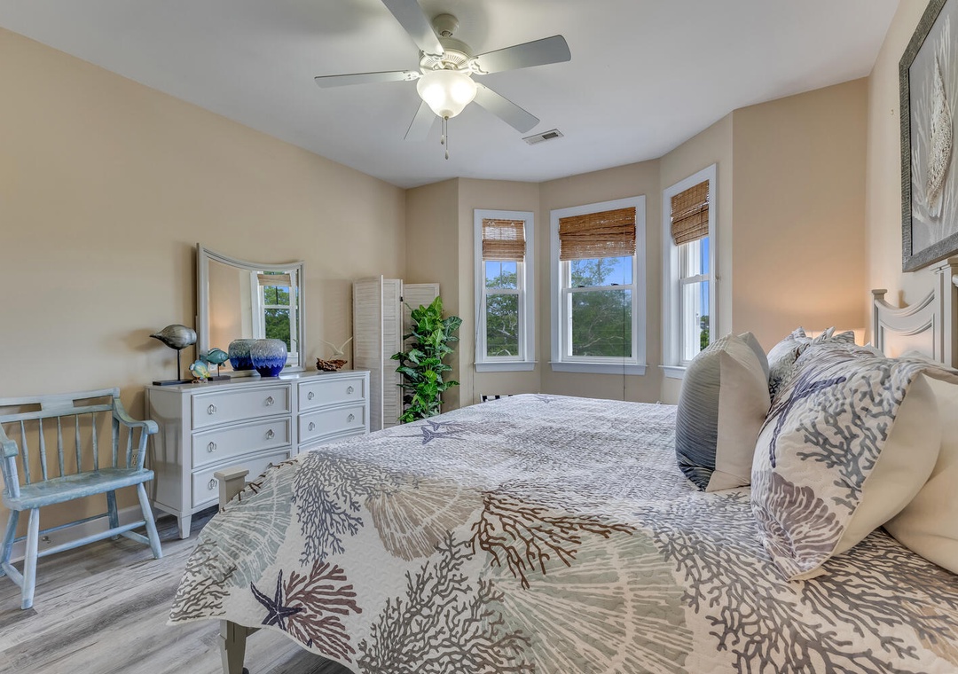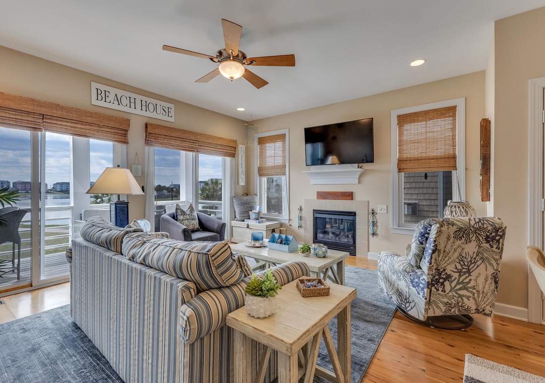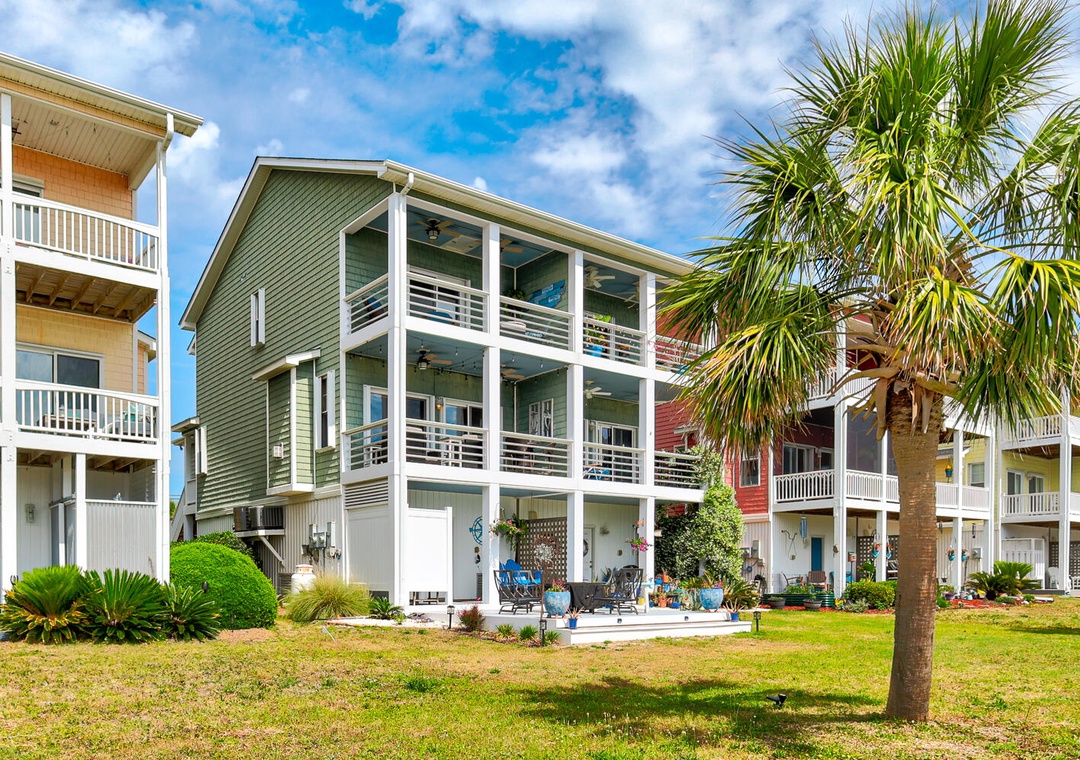 Step outside to discover a large backyard lounging area, thoughtfully designed for relaxation and outdoor fun. unwind after a day at the beach on one of the multiple furnished decks that overlook the tranquil lake.