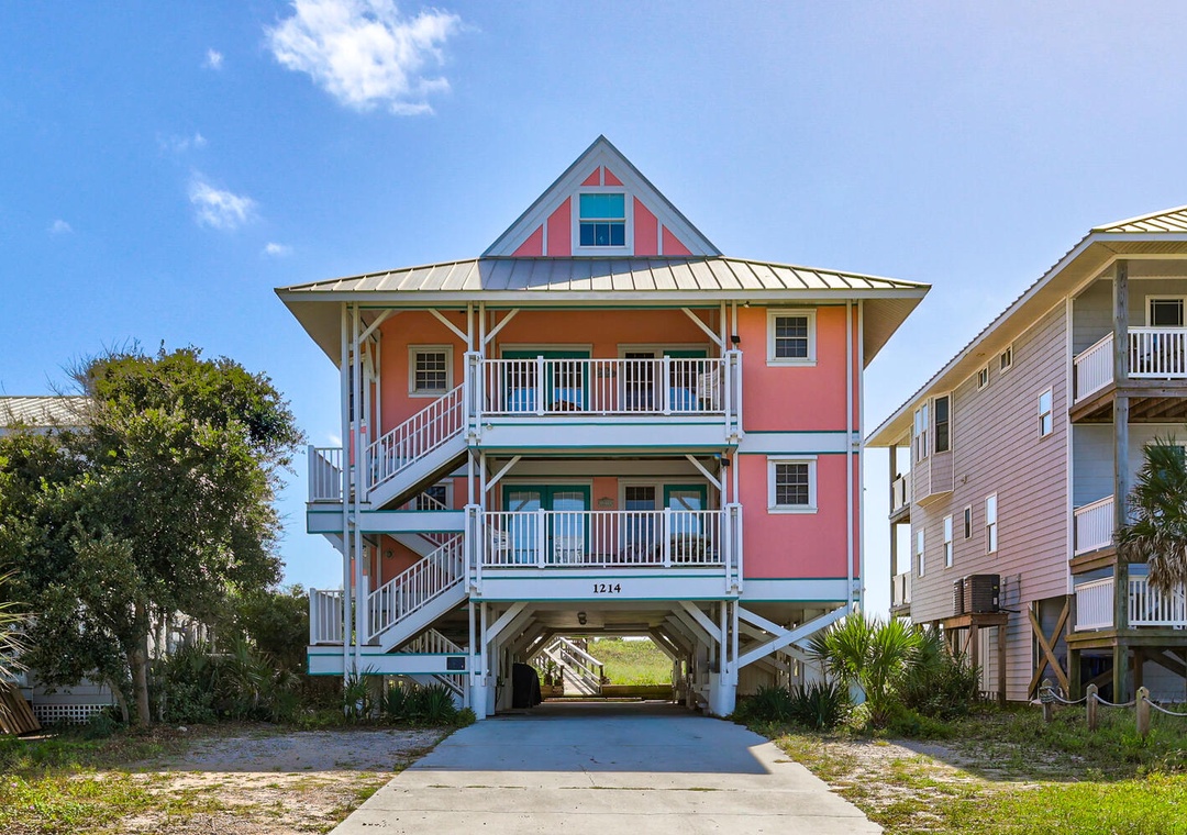 Welcome to LegaSea, your dream oceanfront retreat in Carolina Beach, NC. This stunning 7-bedroom, 5-bathroom home offers a perfect blend of comfort and luxury, accommodating up to 22 guests. Designed to host with ease: two full kitchens (one on each level), two kitchenettes (one on each level) open living/dining areas, and ample space for gathering. Four expansive covered porches offer panoramic views of the Atlantic on one side and the western sky sunsets on the other — ideal for sunrise coffees or evening wind-downs. Top unit has 4 bedrooms and 3 baths. Bottom unit 3 bedrooms 2 baths. Laundry rooms on both levels.