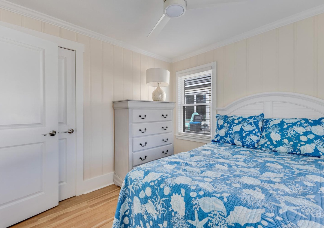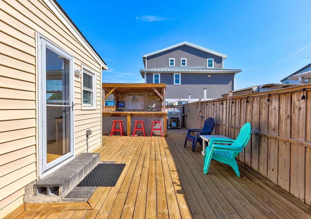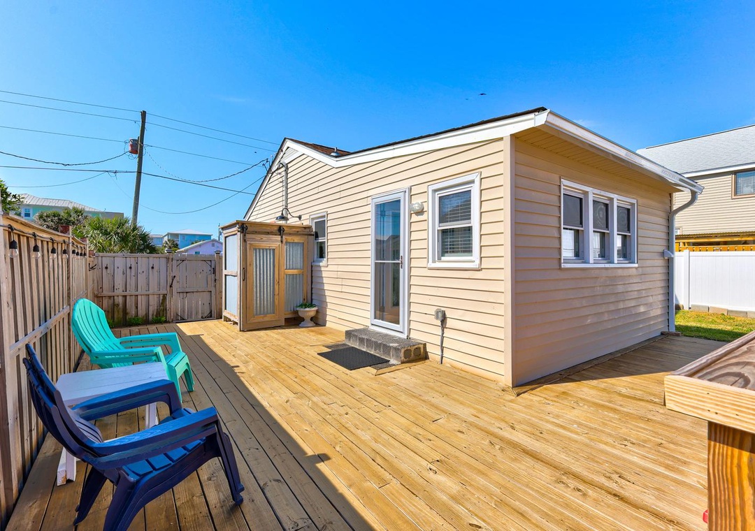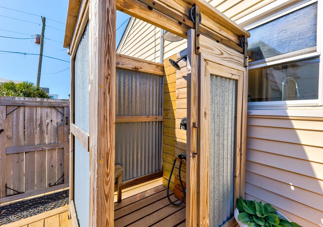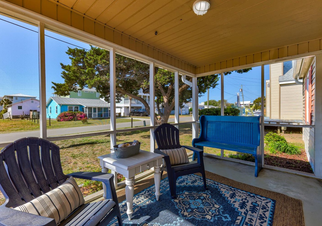 Enjoy your morning or evening on the inviting screened-in front porch, where you can soak in the ocean breeze without the bugs. After a beach day, rinse off in the private outdoor shower, a must-have feature for any beach stay.