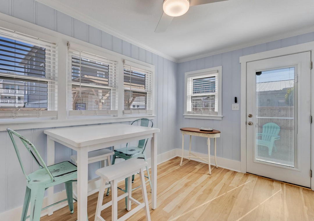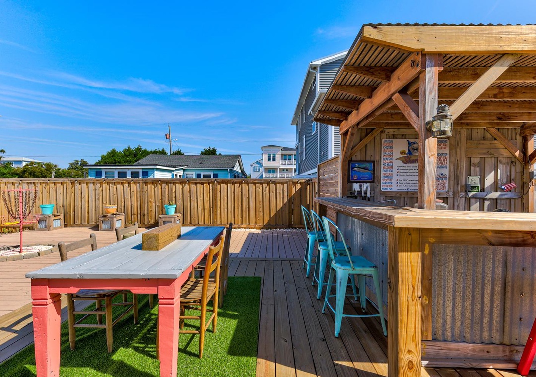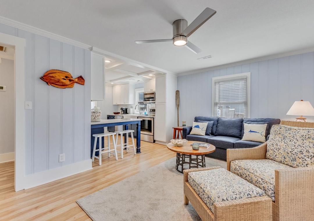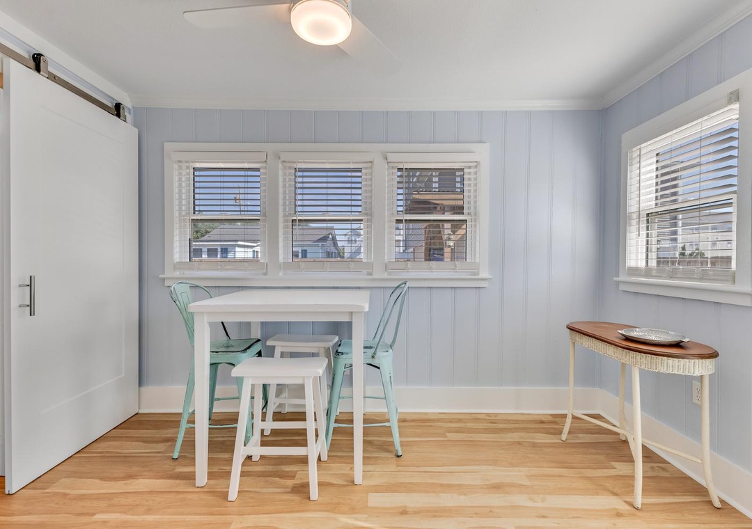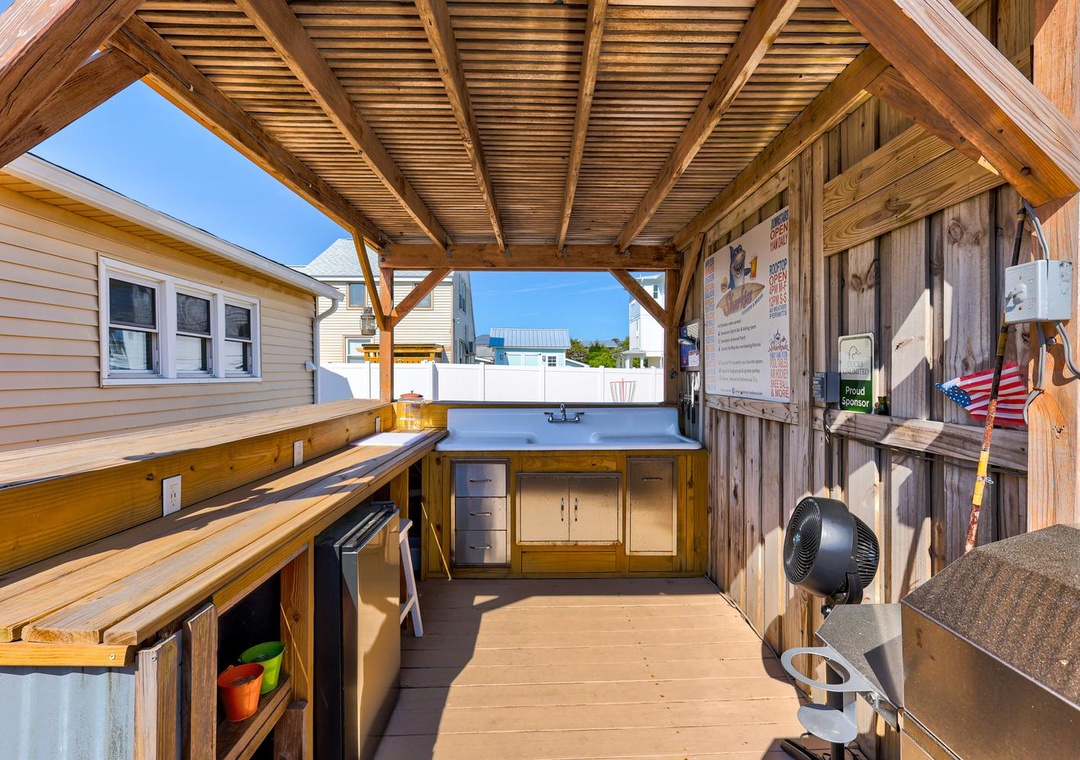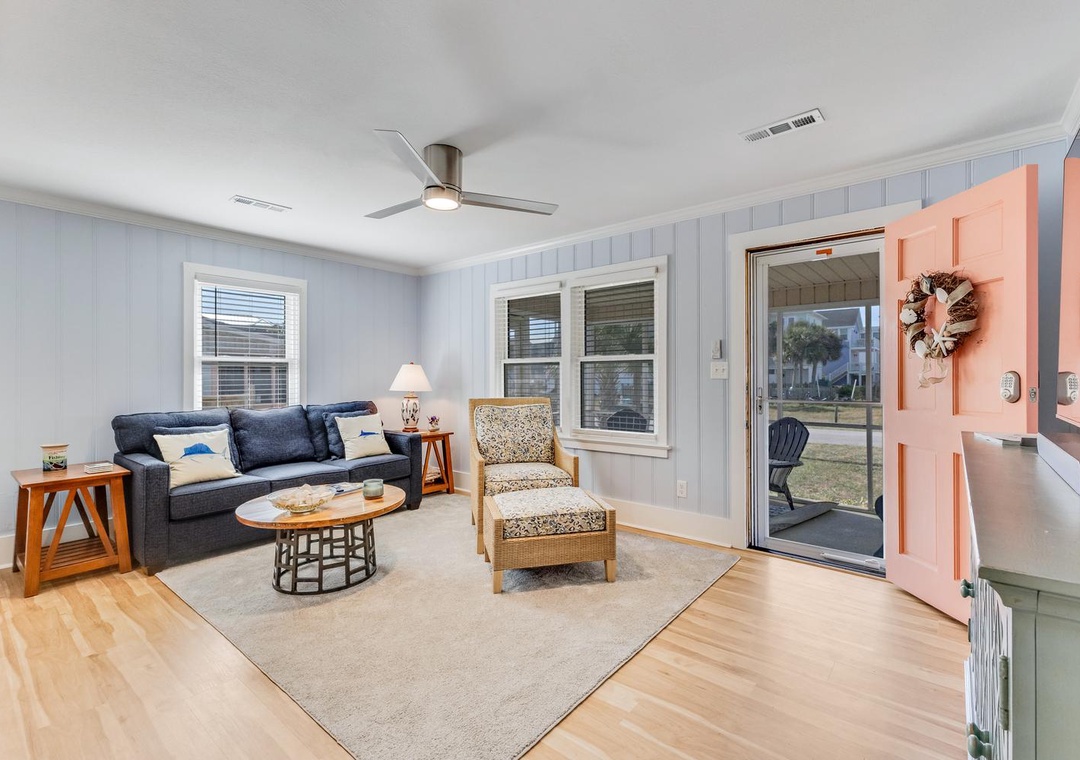 Enjoy your morning or evening on the inviting screened-in front porch, where you can soak in the ocean breeze without the bugs. After a beach day, rinse off in the private outdoor shower, a must-have feature for any beach stay.
