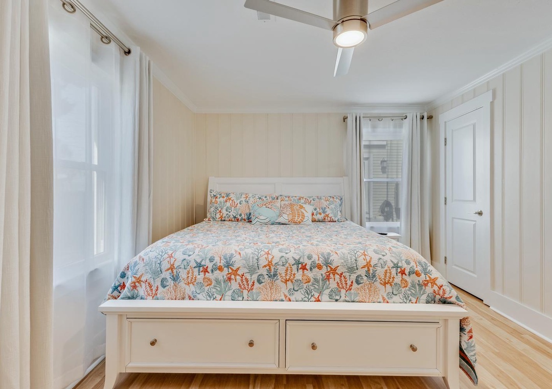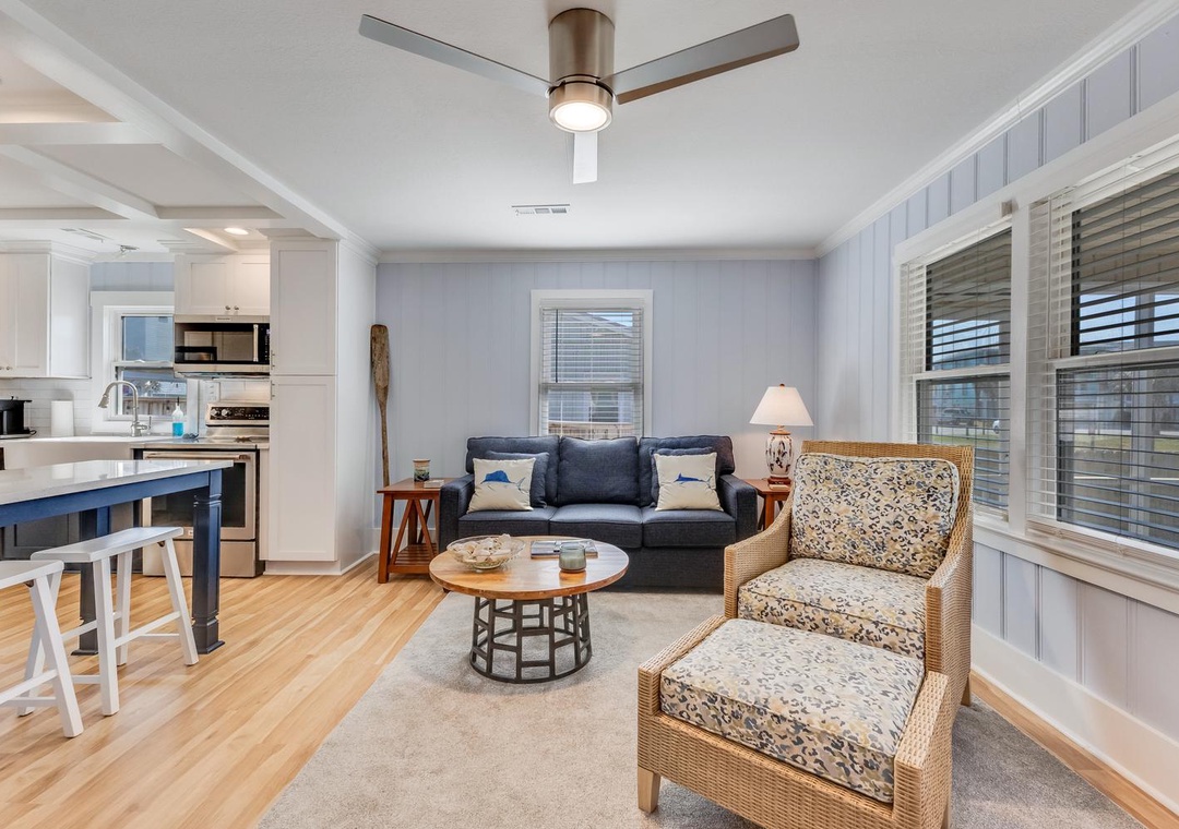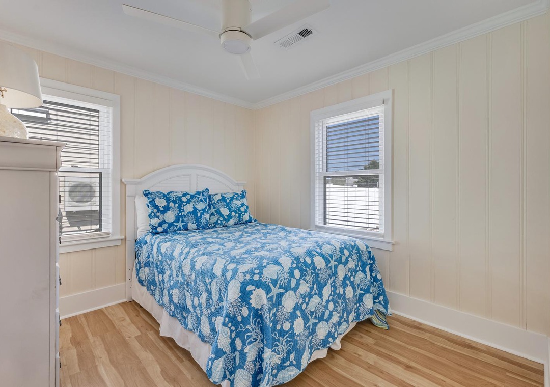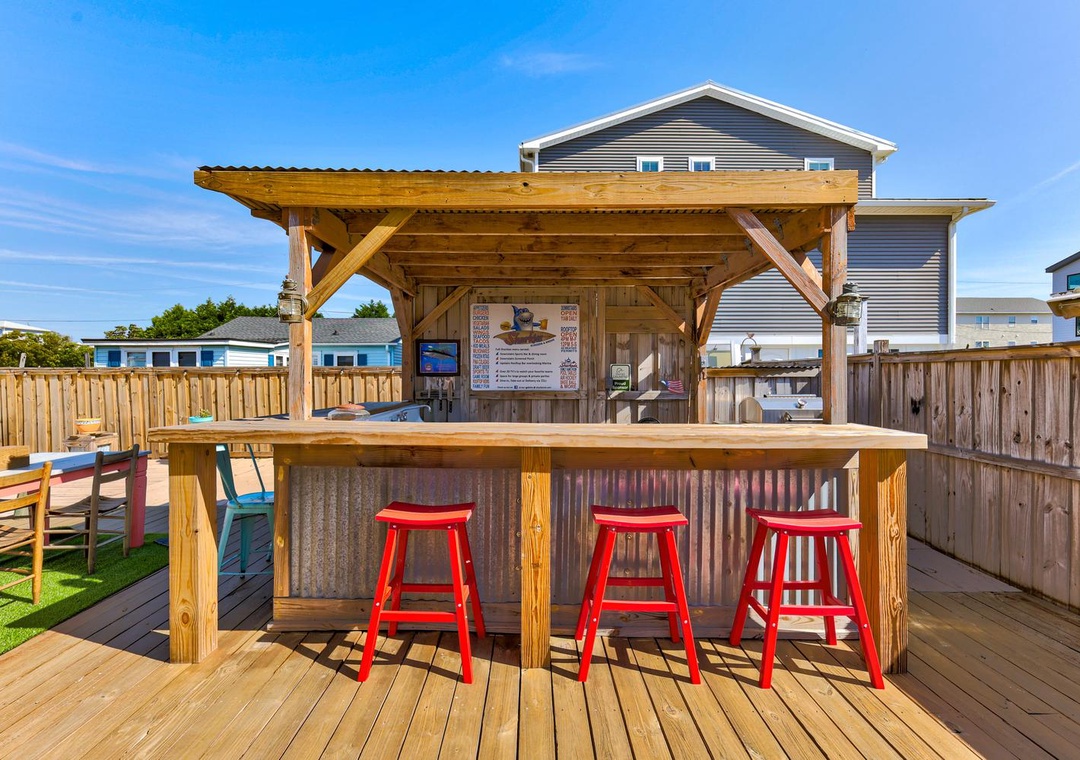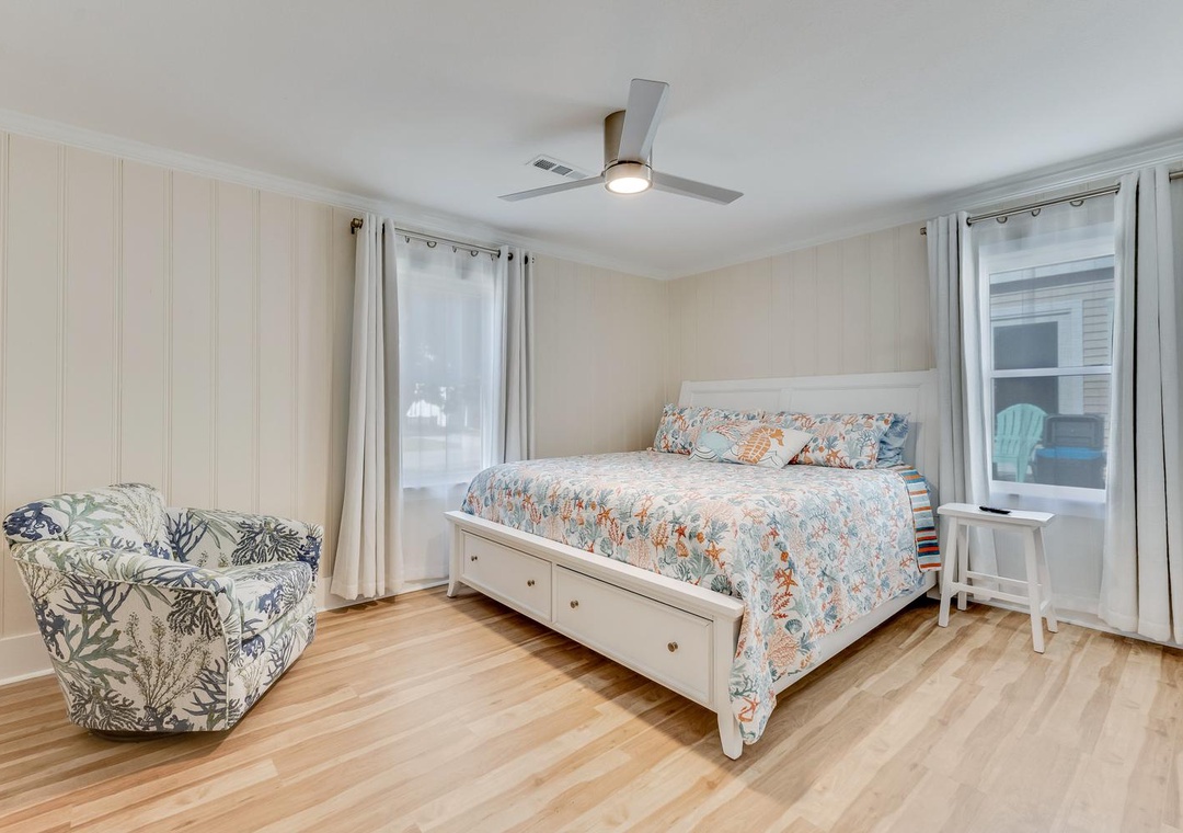 Enjoy your morning or evening on the inviting screened-in front porch, where you can soak in the ocean breeze without the bugs. After a beach day, rinse off in the private outdoor shower, a must-have feature for any beach stay.