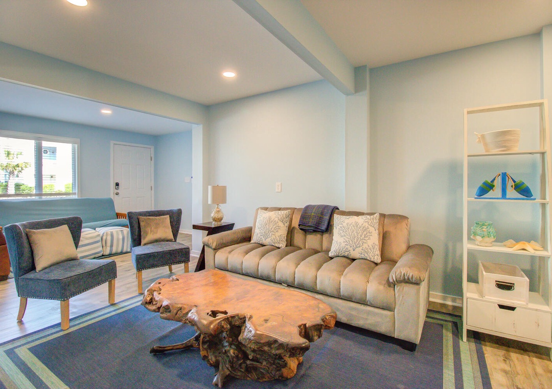 Welcome to Next Time Down, a beautifully renovated oceanfront vacation home completed in 2021. Perfectly suited for families, this spacious retreat offers direct beach access via a private walkway and boasts two expansive oceanfront decks where you can relax and soak in the sea breeze. Inside, the house features modern amenities including new kitchen appliances, Smart TVs, and two comfortable family rooms, ensuring entertainment for guests of all ages.