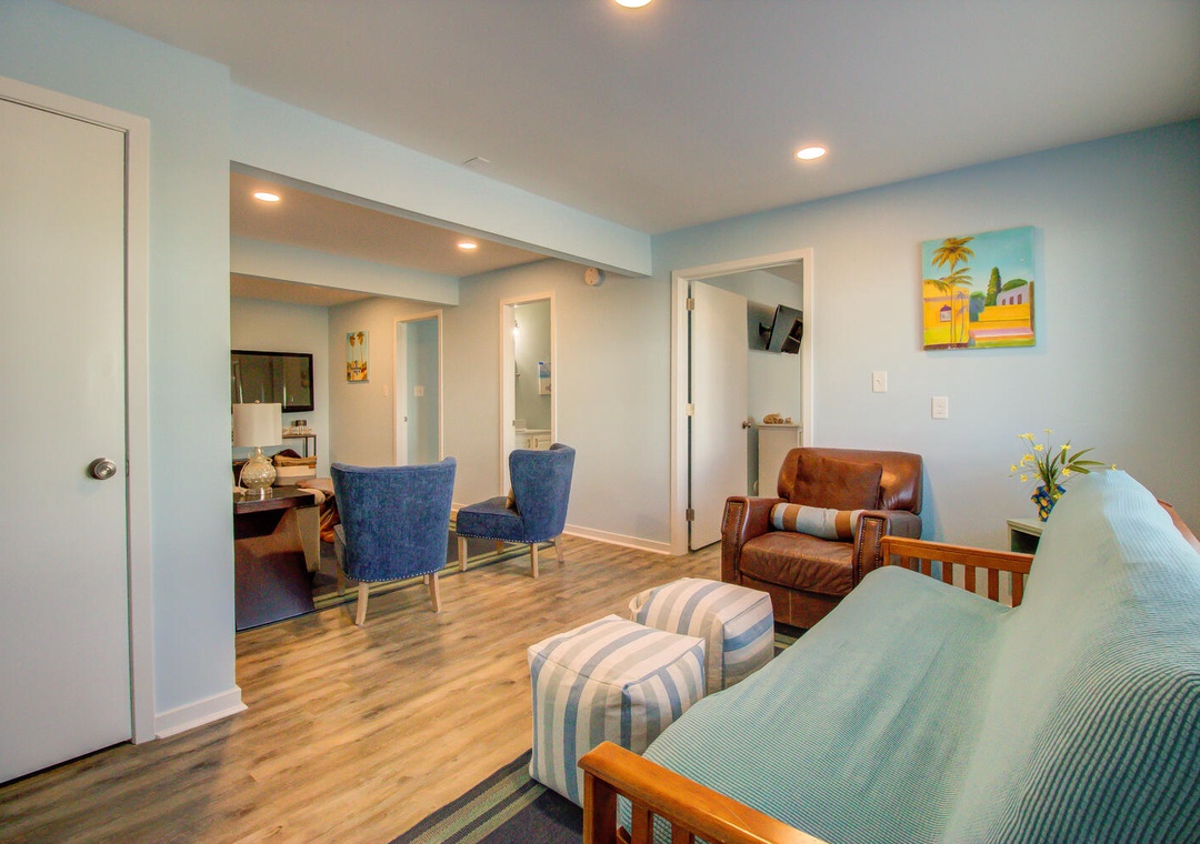 Our stay really was great. This is our 5th vacation to Kure and we love it there. The beach access was perfect and not too crowded. The weather was perfection so we got to enjoy a lot of beach time. The location made it easy for morning coffee runs, or dinner out. Plus, it was just a short drive to the farmers market and our favorite ice cream shop. We took full advantage of the deck seating which accommodated all of us easily. The being said, although the kitchen is fully stocked with tons of small appliances, dishes and pots and pans, there was not any place to store grocery items so the counter bar top was always full. For 10 people, we had a lot of food. The furniture in the dining and living room need an update. The sofa was falling apart and not very comfortable to sit in. The table legs kept coming loose, making it wobbly and the chairs have seen better days. These are things we can live with for a beach side rental. I think the biggest complaint for everyone staying with us was how uncomfortable the mattresses were. There are memory foam mattresses that are a few hundred each that would have made sleeping an absolute dream.