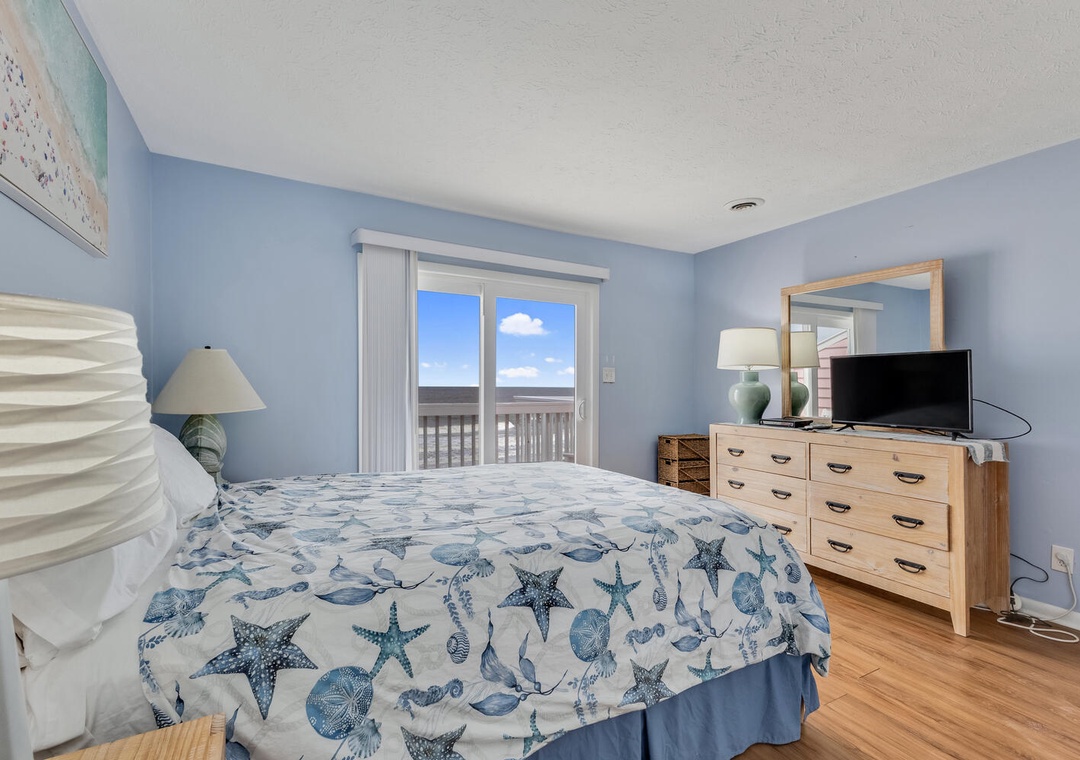 Bedroom 1: Queen Bed, Access to Oceanfront Deck