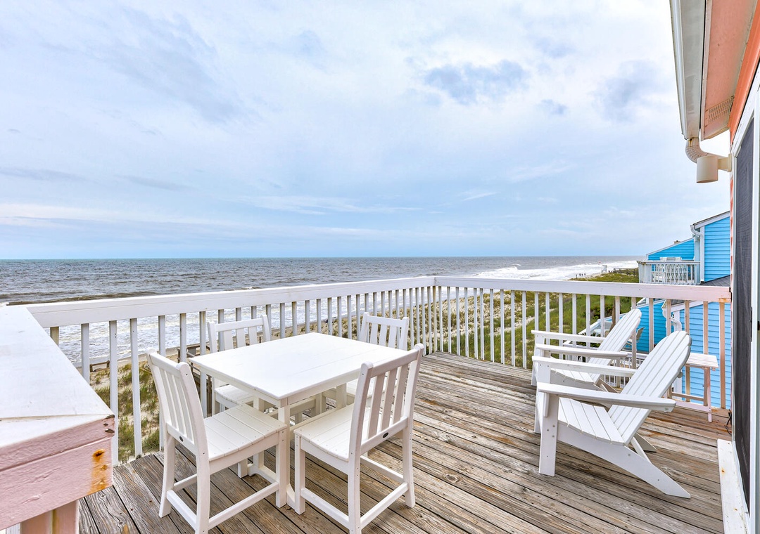 Thank you, Karen. We're glad you enjoyed the beautiful oceanfront deck and hope to welcome you back soon.Carolina Beach Realty staff