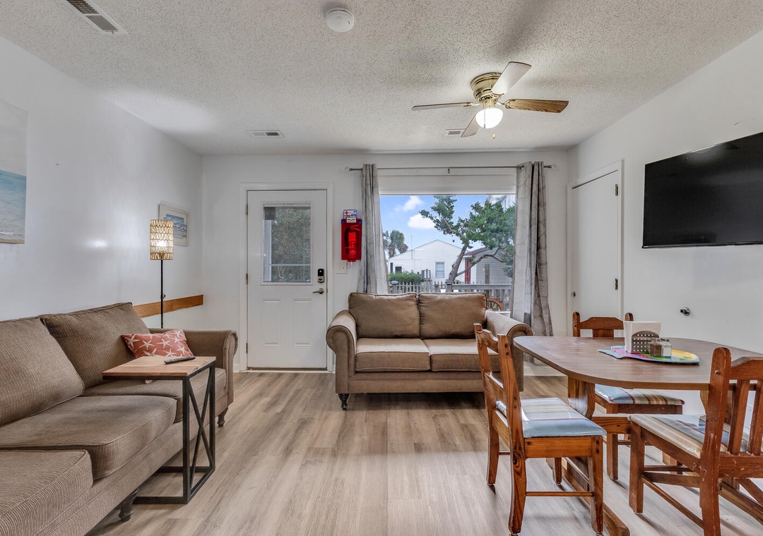 Rent both sides of a duplex for memorable gathering. Total of 4 bedrooms, 2 kitchens 2 living areas create space for all. Enjoy a large deck perfect for relaxing, or playing after a day at the beach. Inside, you’ll find a bright, comfortable space with beachy décor, a fully stocked kitchen, fast Wi-Fi, and everything you need for a stress-free stay.