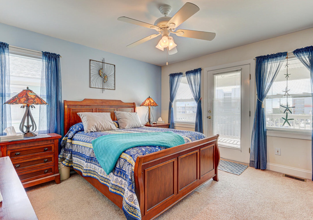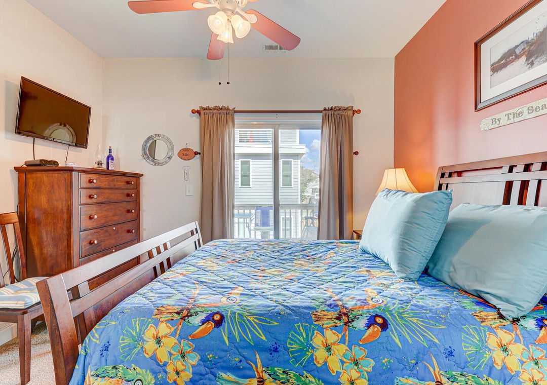 3rd Floor Queen Bed Smart TV Ceiling Fan Private Deck with 4 chairs and Ceiling Fan Attached Bathroom