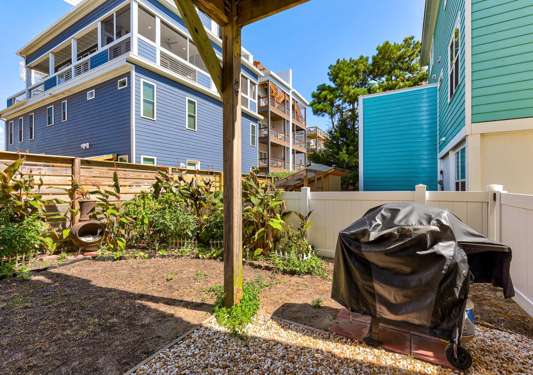 Finally, after a day at the beach, or a day out fishing, or after a day of golf, or maybe just adventuring around town, you may want to enter into the back yard and rinse off in the outdoor shower before heading upstairs to finish off your day.