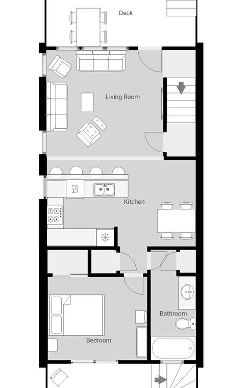 The second floor also includes a comfortable bedroom with double bed, ceiling fan, smart TV, with private sundeck, table and chairs, retractable awning, and stairway for easy access down to the rear enclosed yard.